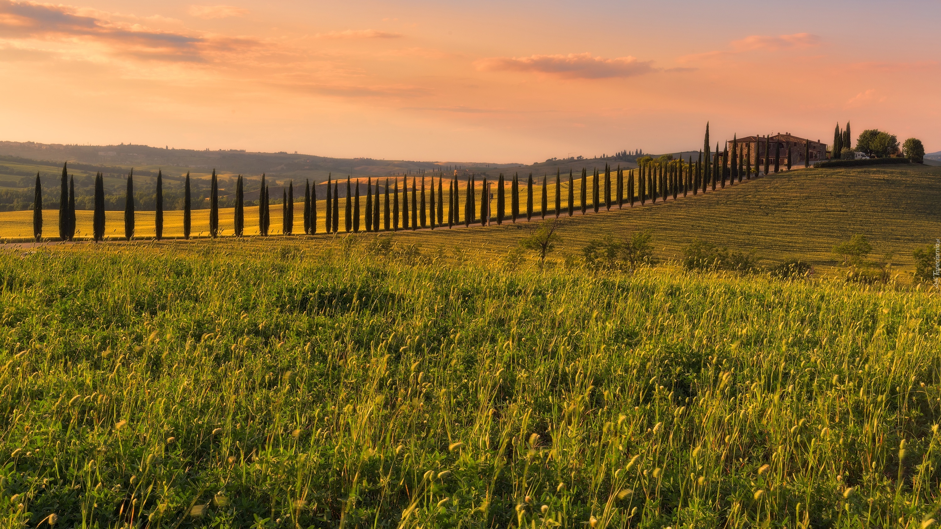 Edytor tapety: Cyprysy przy drodze w Toskanii