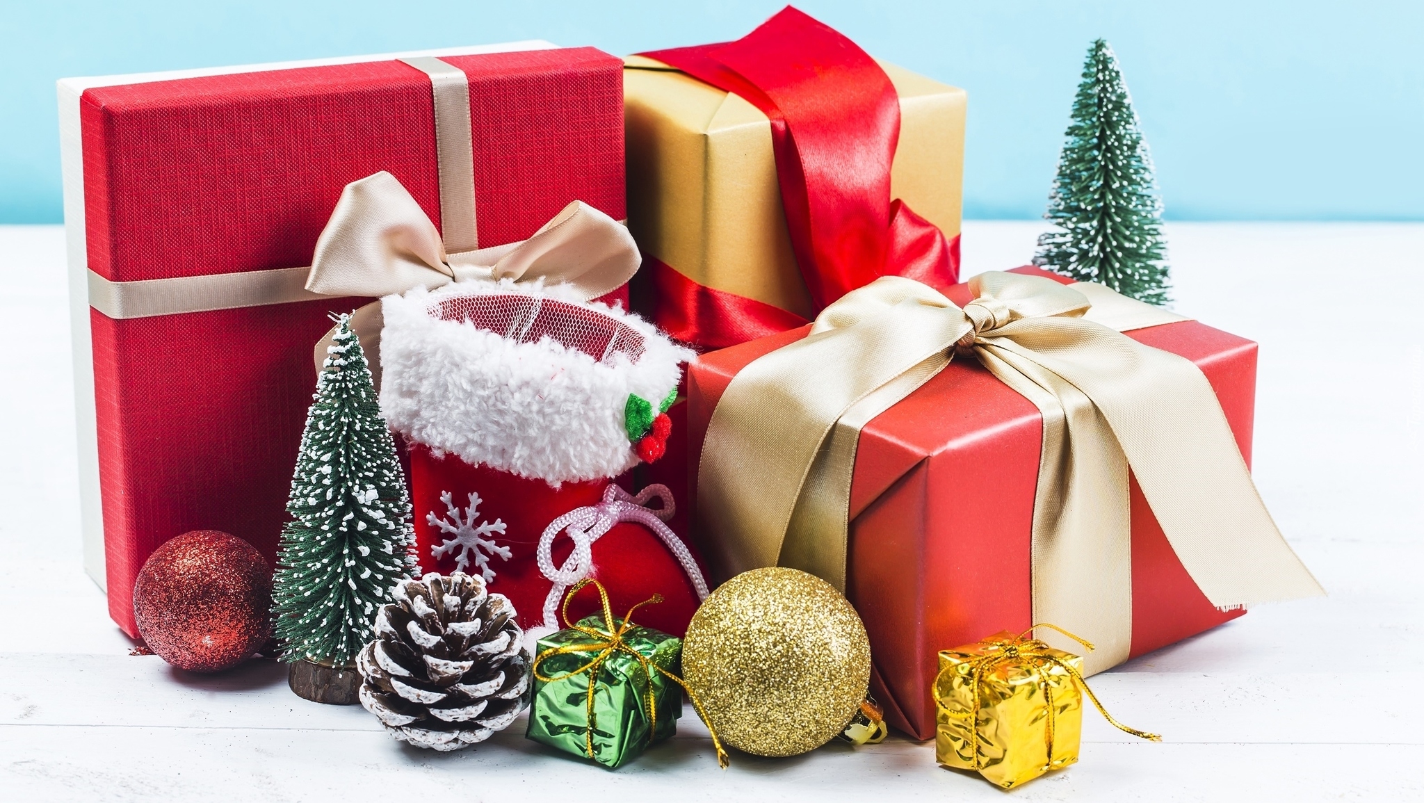 Edytor tapety: Prezenty obok ozdób świątecznych