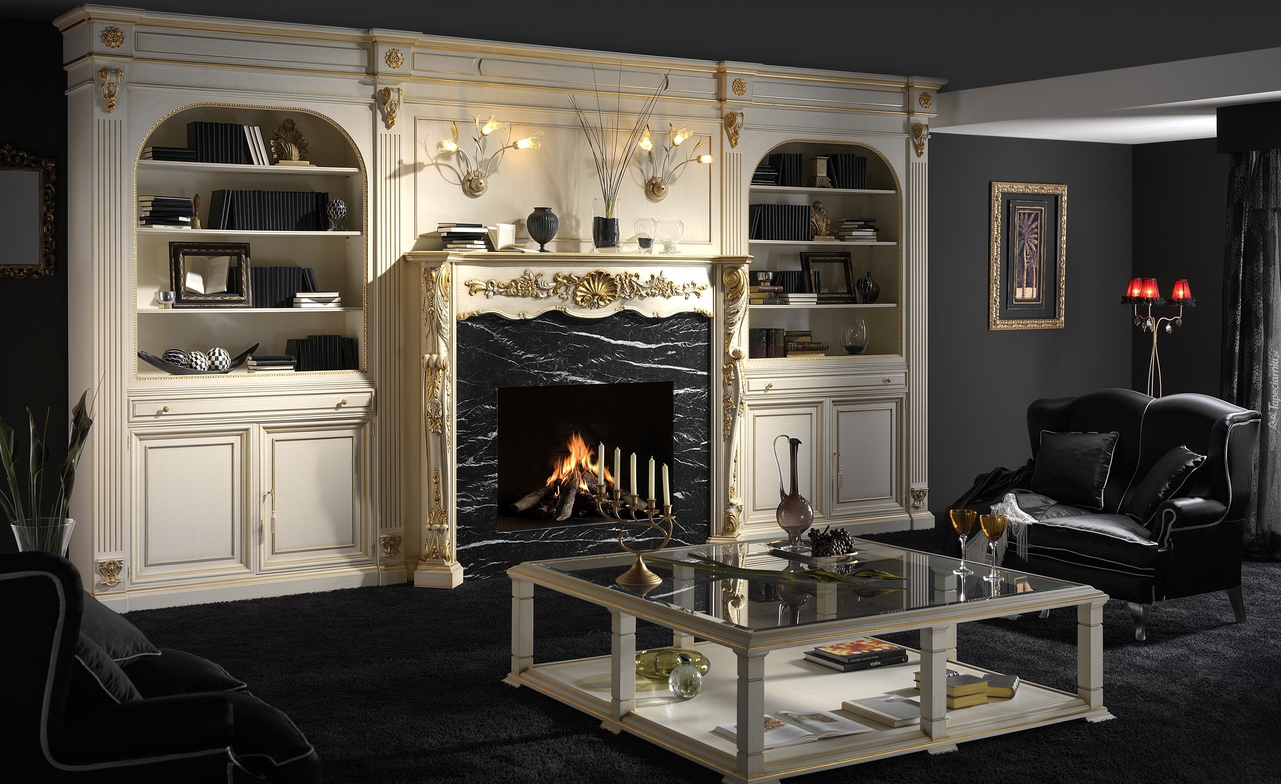 Edytor tapety: Regał z kominkiem