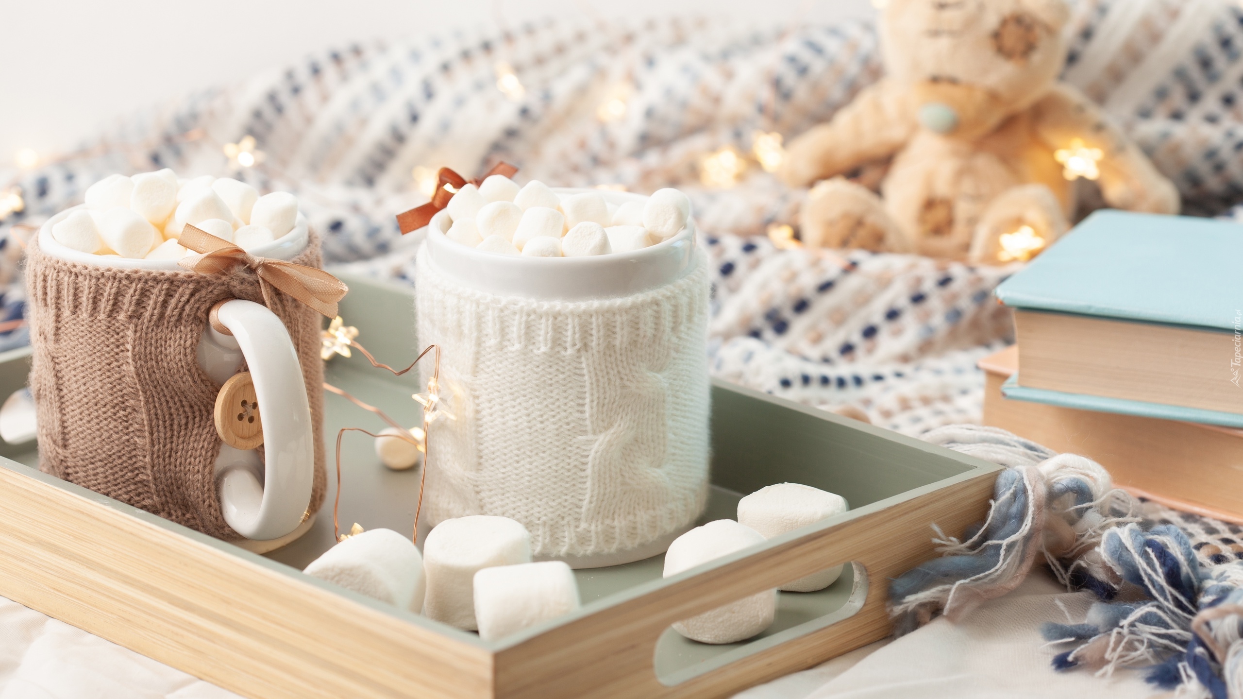Edytor tapety: Pianki w kubkach postawionych na tacy