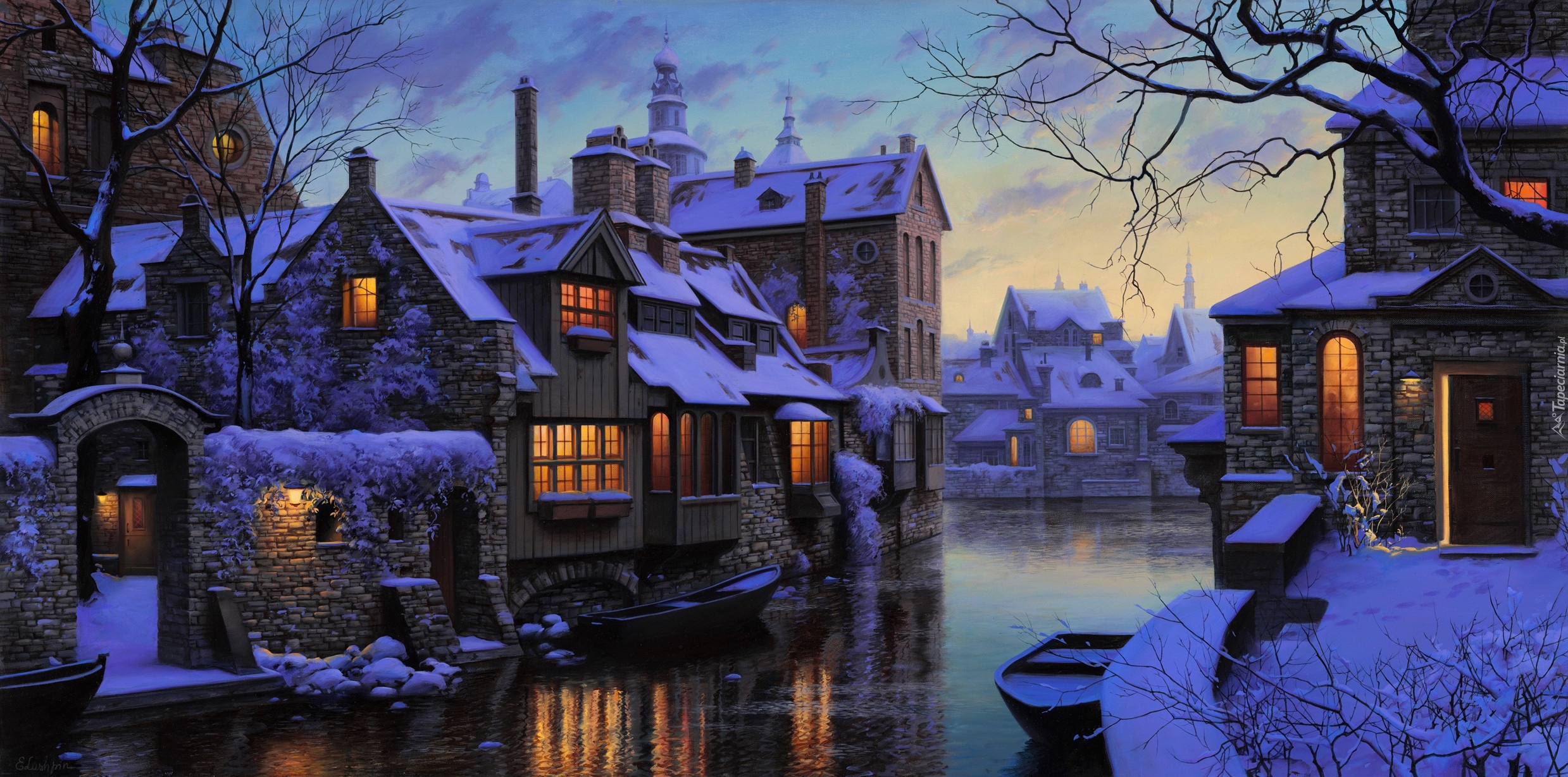 Edytor tapety: Kanał w belgijskim mieście Brugia zimą
