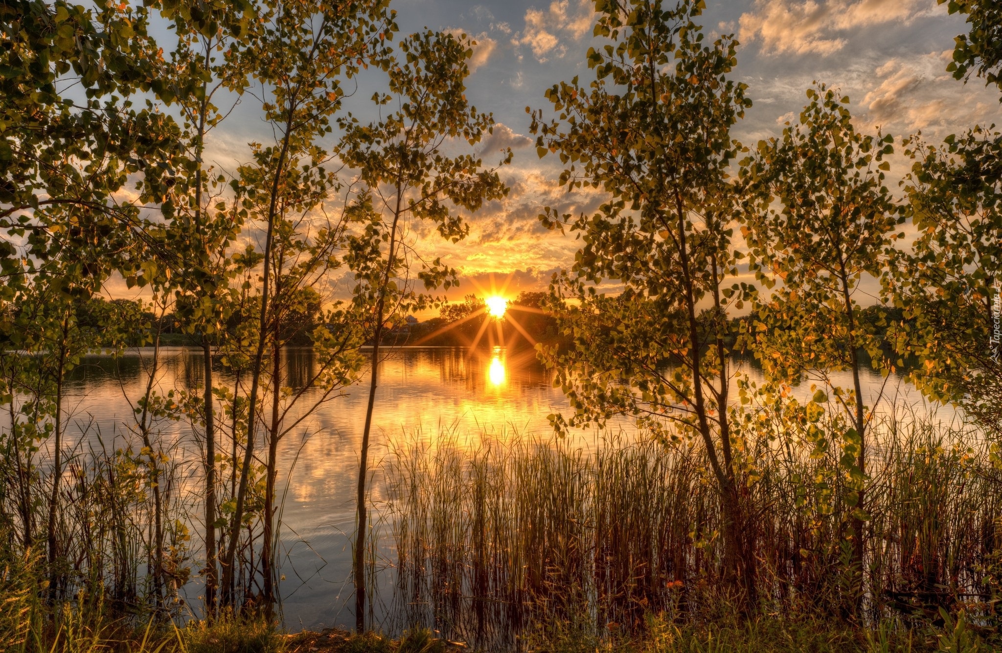 Edytor tapety: Rośliny nad rzeką w porannym słońcu