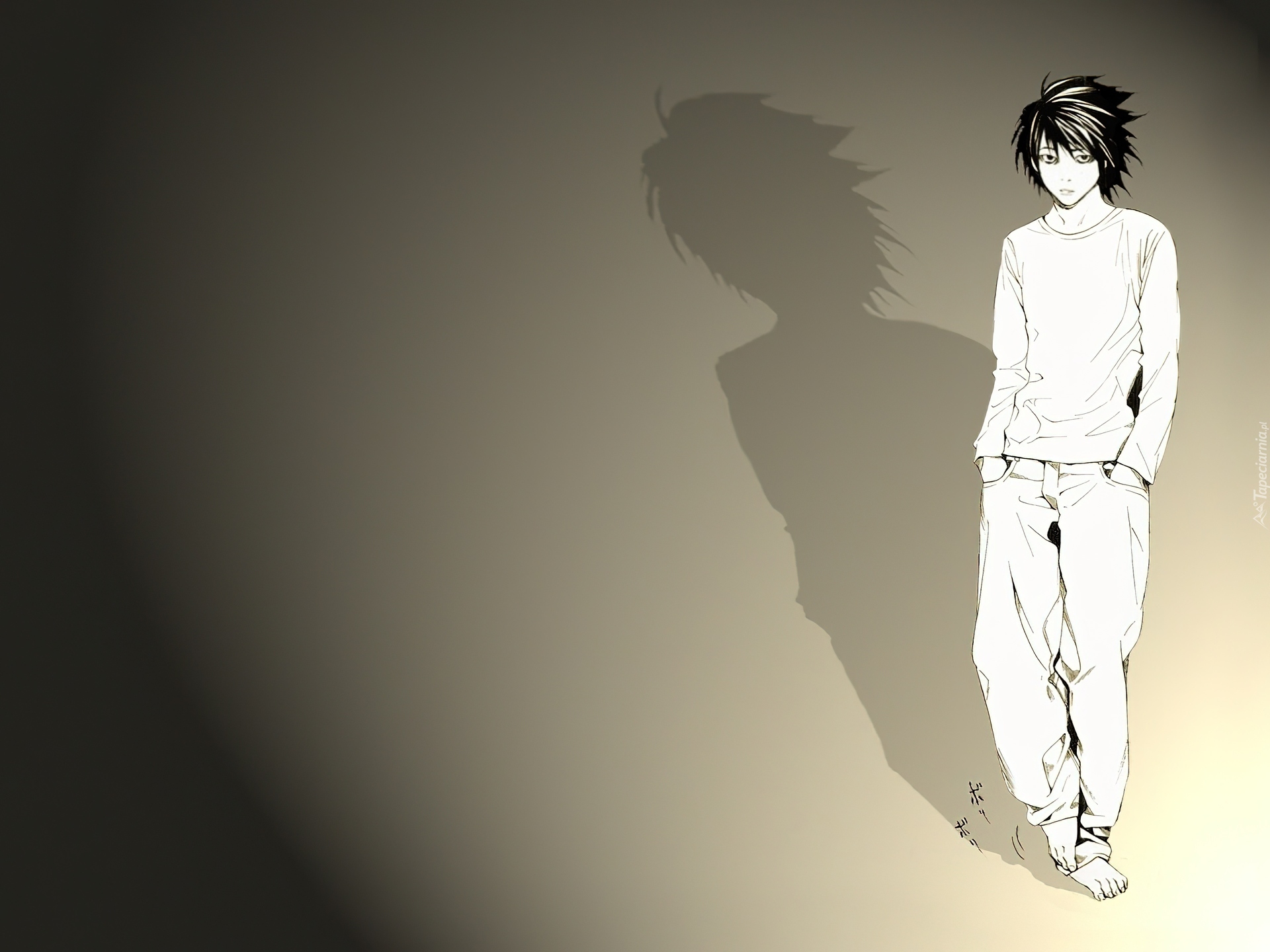 Edytor tapety: Death Note, cień, chłopak, stoi, stopy