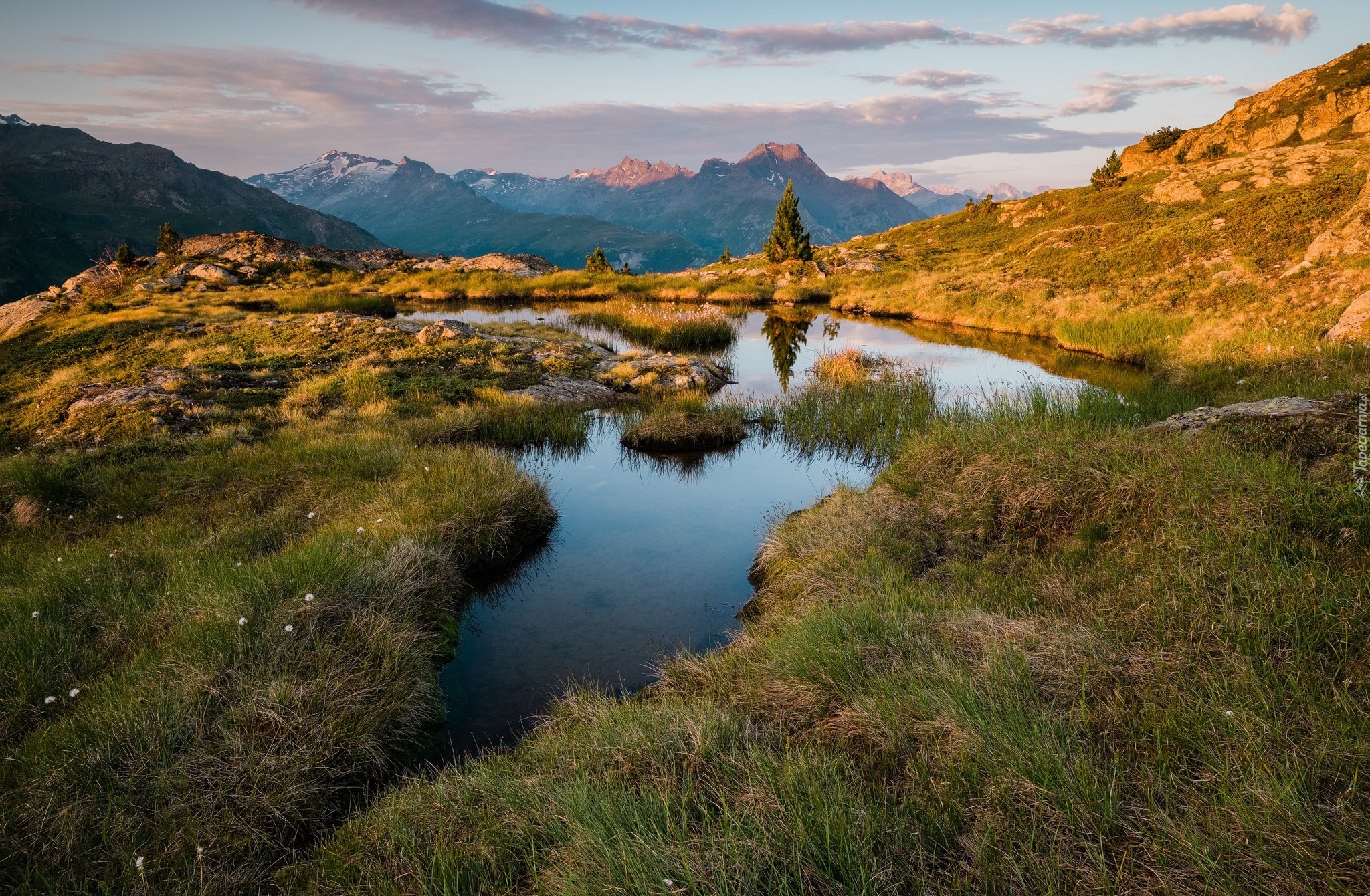 Edytor tapety: Trawy nad rzeczką w górach