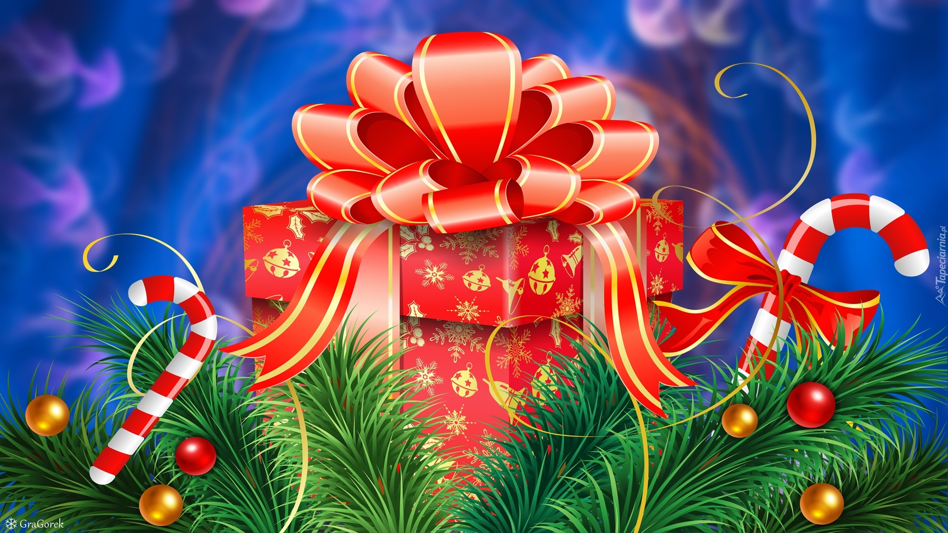 Edytor tapety: Prezent z stroikiem świątecznym