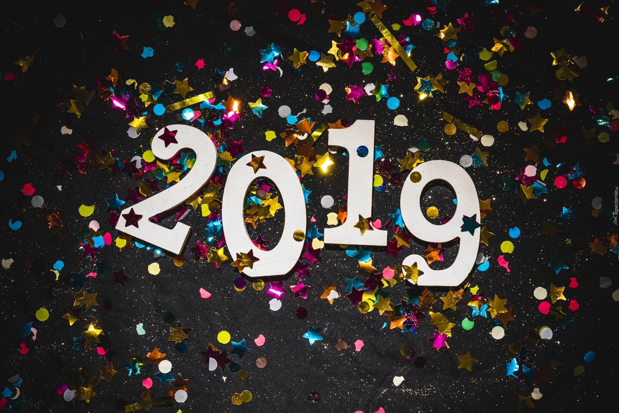 Edytor tapety: Konfetti rozsypane na cyfrach 2019