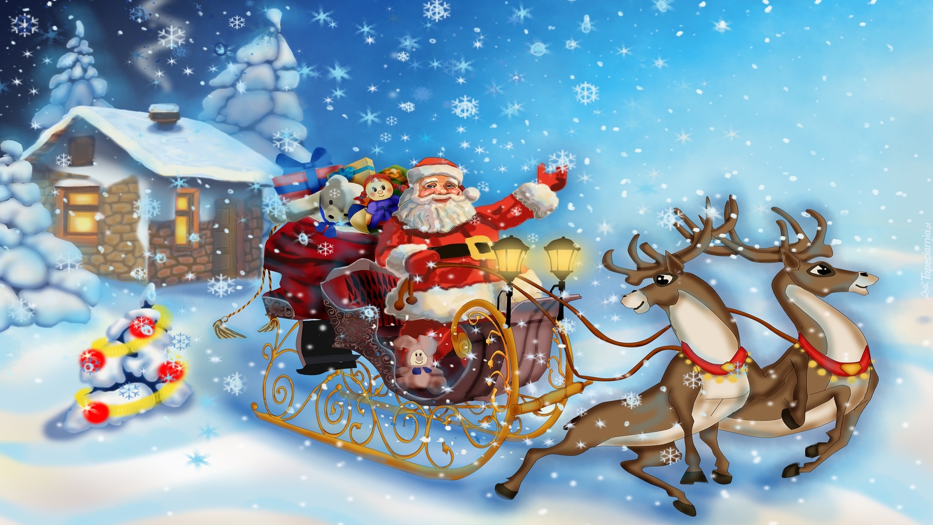 Edytor tapety: Mikołaj z prezentami na saniach