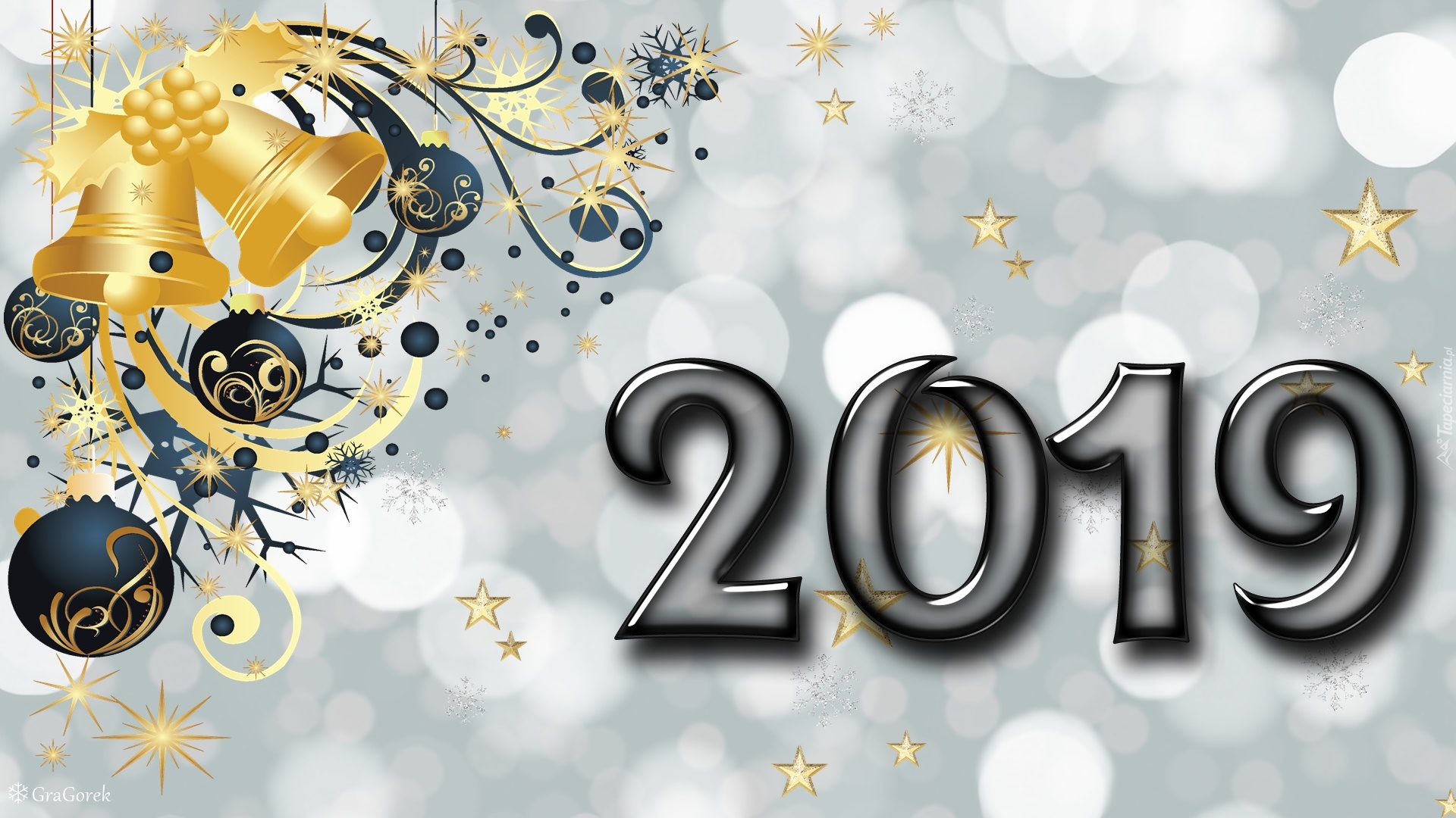 Edytor tapety: Złoto-czarna kompozycja Nowego Roku 2019