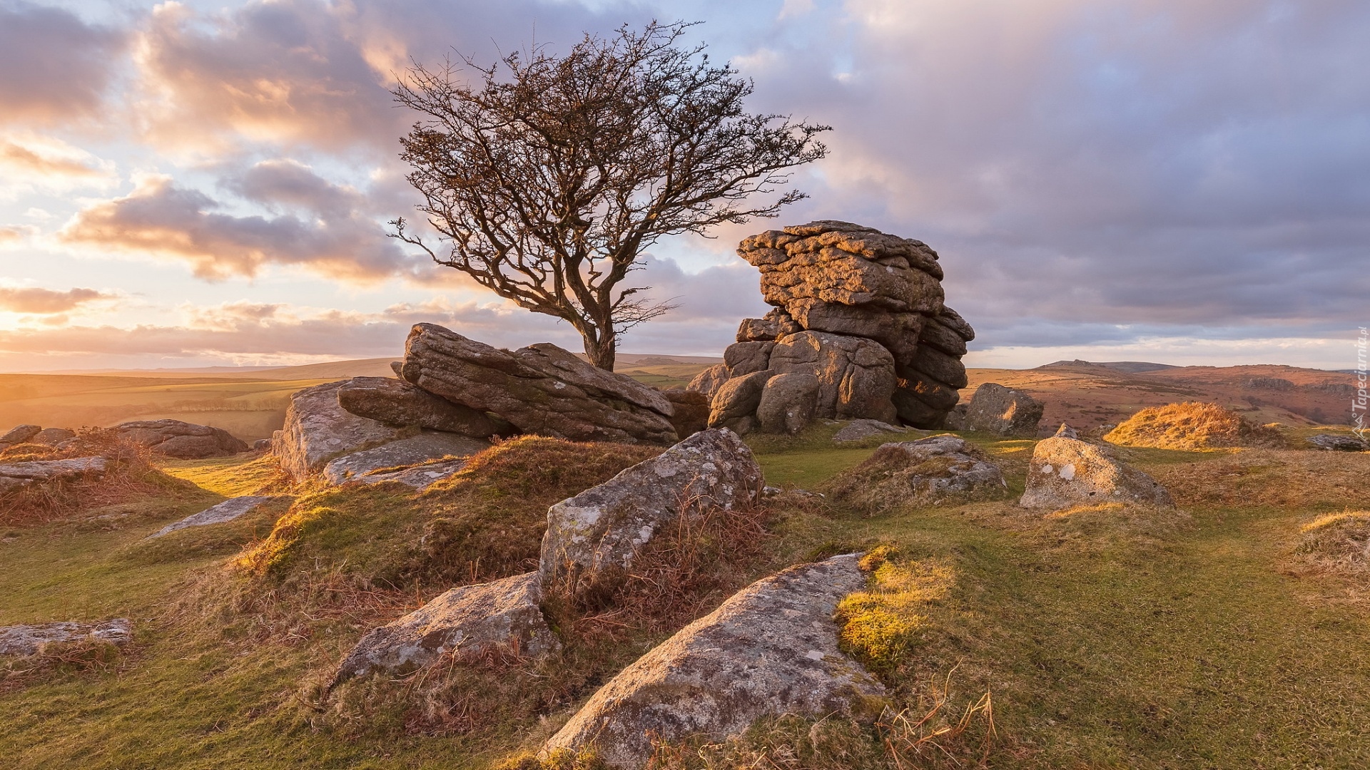 Edytor tapety: Drzewo obok skał w Parku Narodowym Dartmoor
