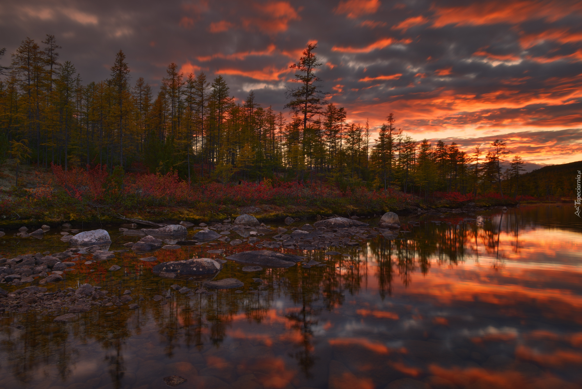 Edytor tapety: Drzewa na brzegu jeziora Jack London w Rosji