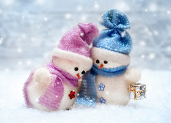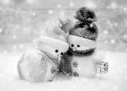 Edytor tapety: Przytulone bałwanki w czapeczkach