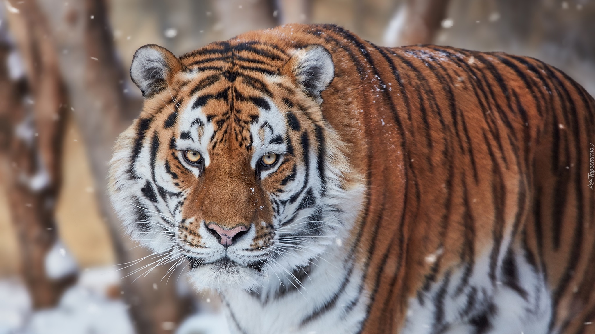 Edytor tapety: Płatki śniegu na tygrysie