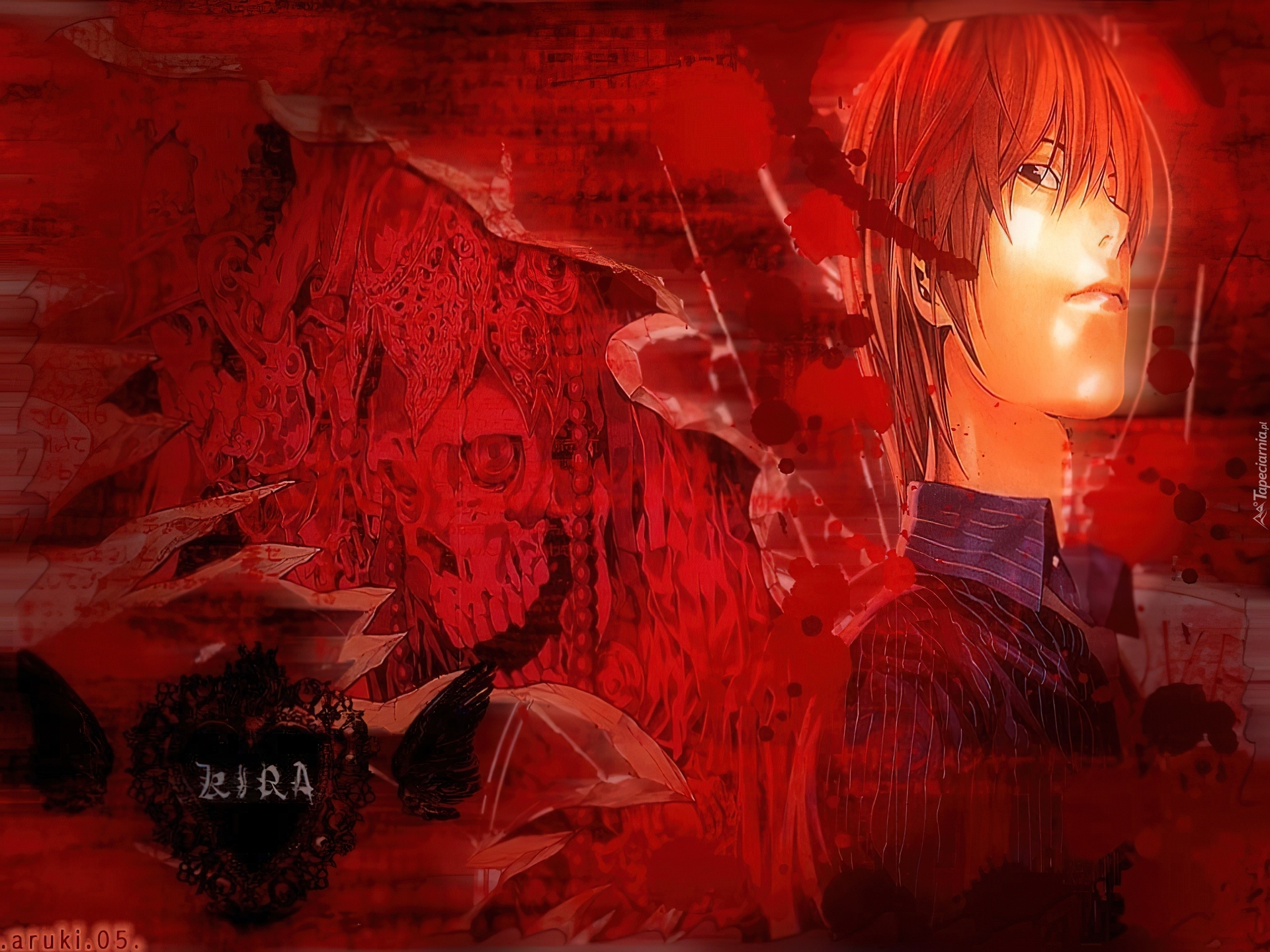 Edytor tapety: Death Note, czaszka, chłopak, koszula, serce