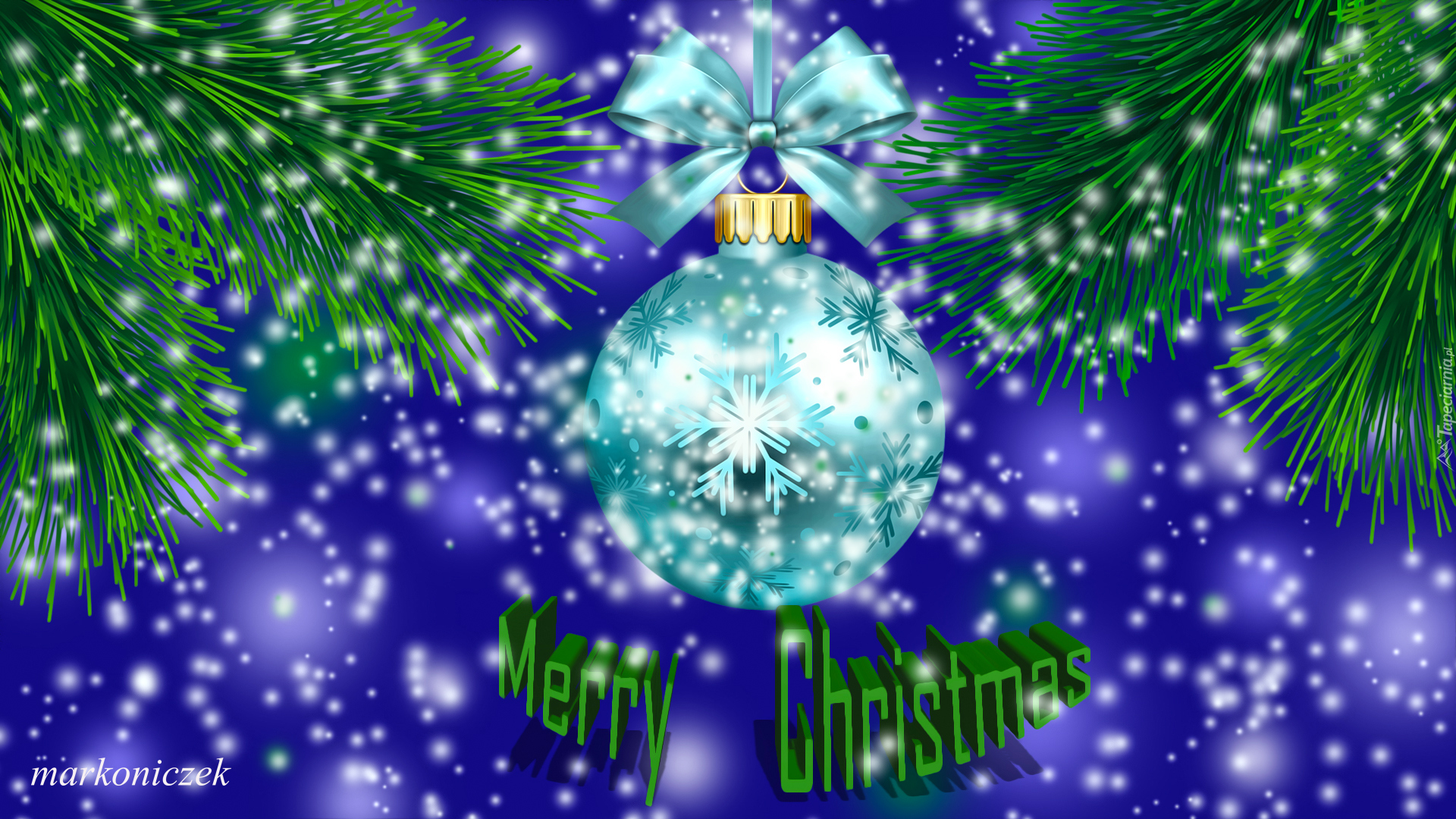 Edytor tapety: Bombka między zielonymi gałązkami świerku