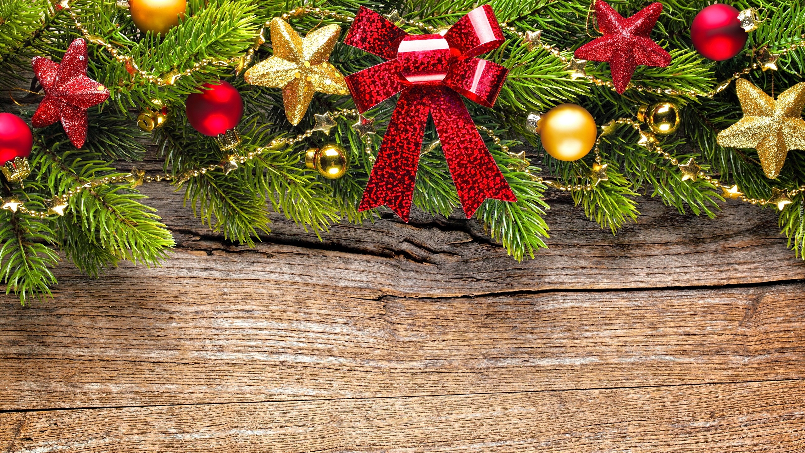 Edytor tapety: Bombki i gwiazdki obok kokardy na gałązkach