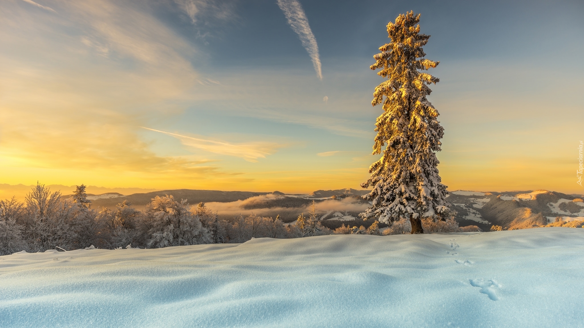 Edytor tapety: Ośnieżone świerki w promieniach słońca