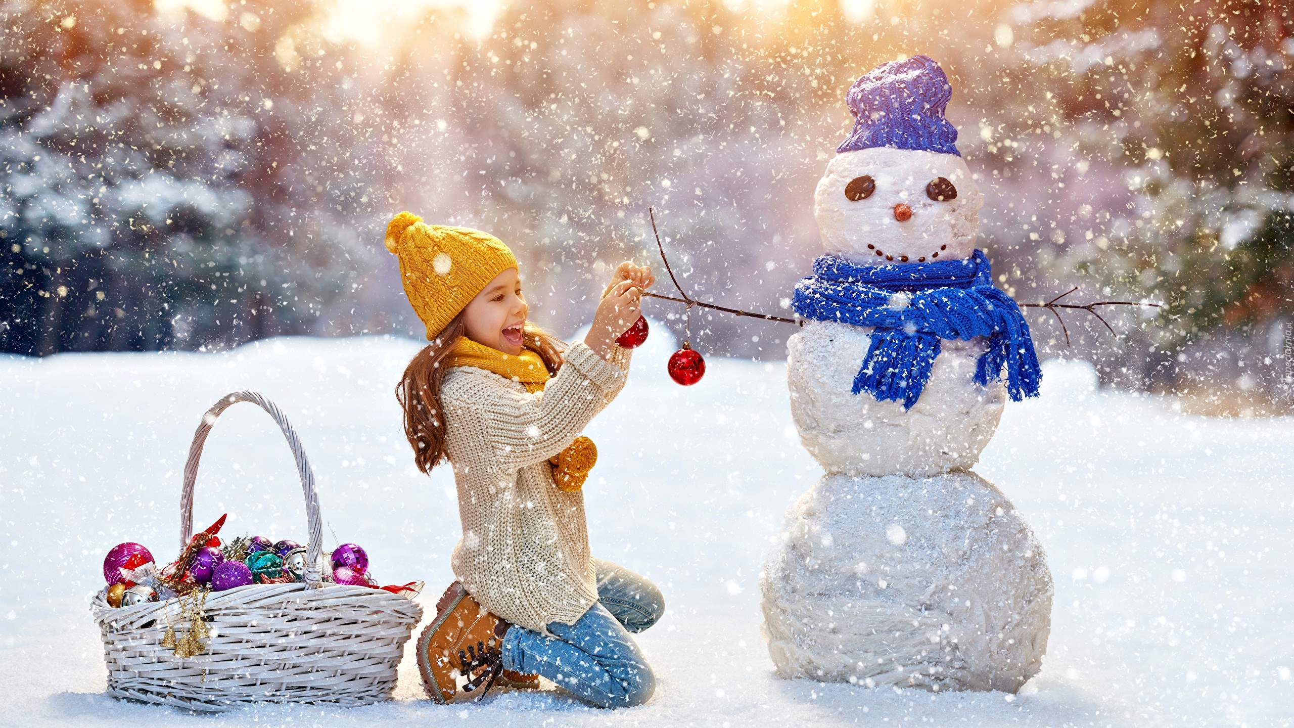 Edytor tapety: Dziewczynka dekoruje bałwana