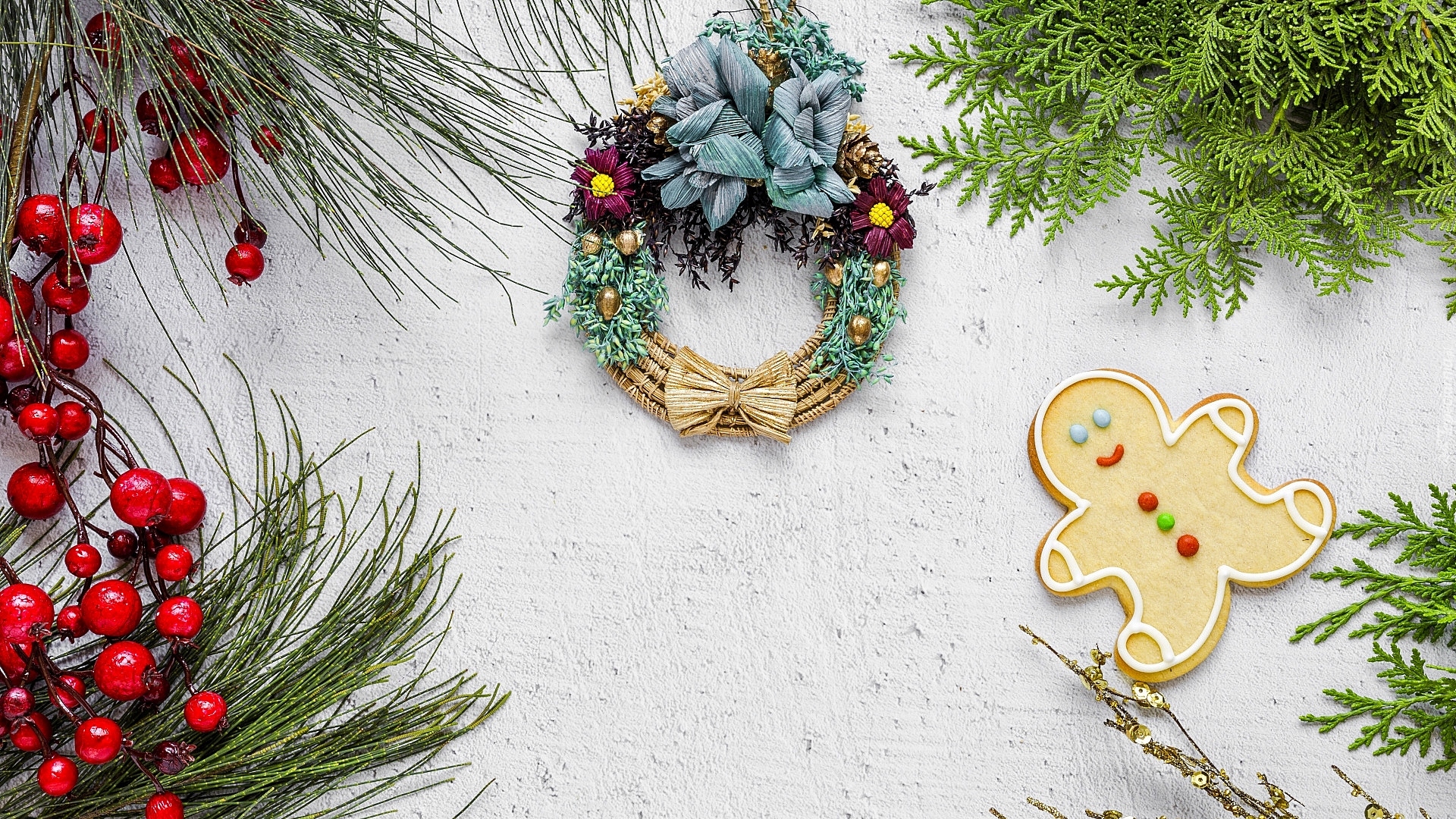 Edytor tapety: Świąteczny wieniec z ozdobami