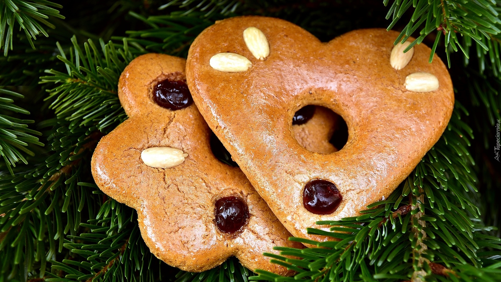 Edytor tapety: Pierniczki położone na gałązkach świerkowych