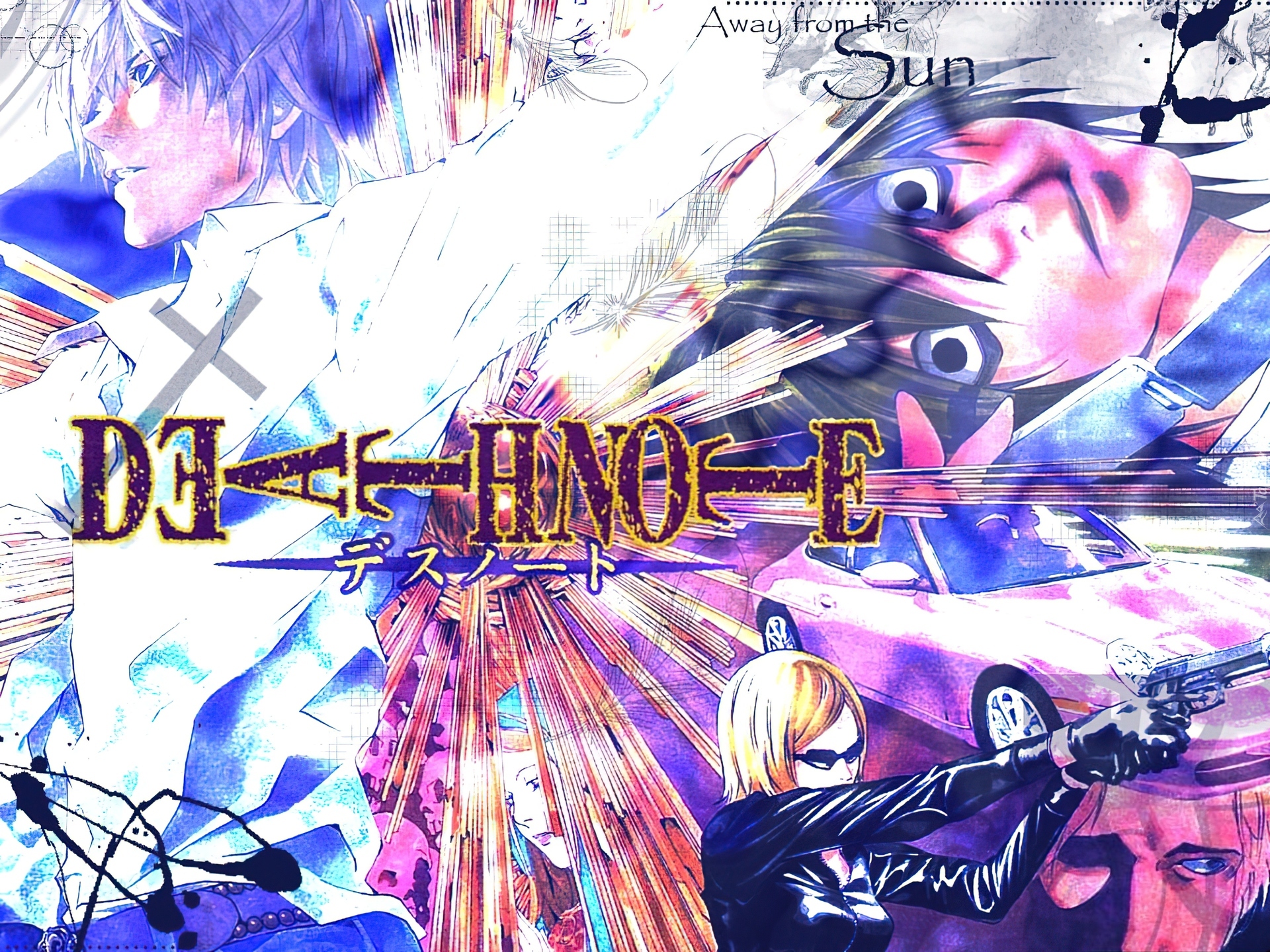 Edytor tapety: Death Note, porshe, napisy, ludzie, twarze, pistolet