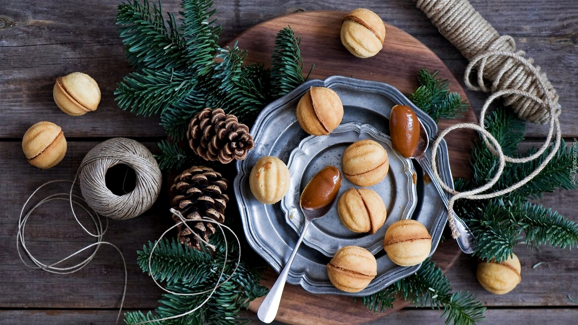 Edytor tapety: Ciasteczka w kształcie orzechów na talerzu