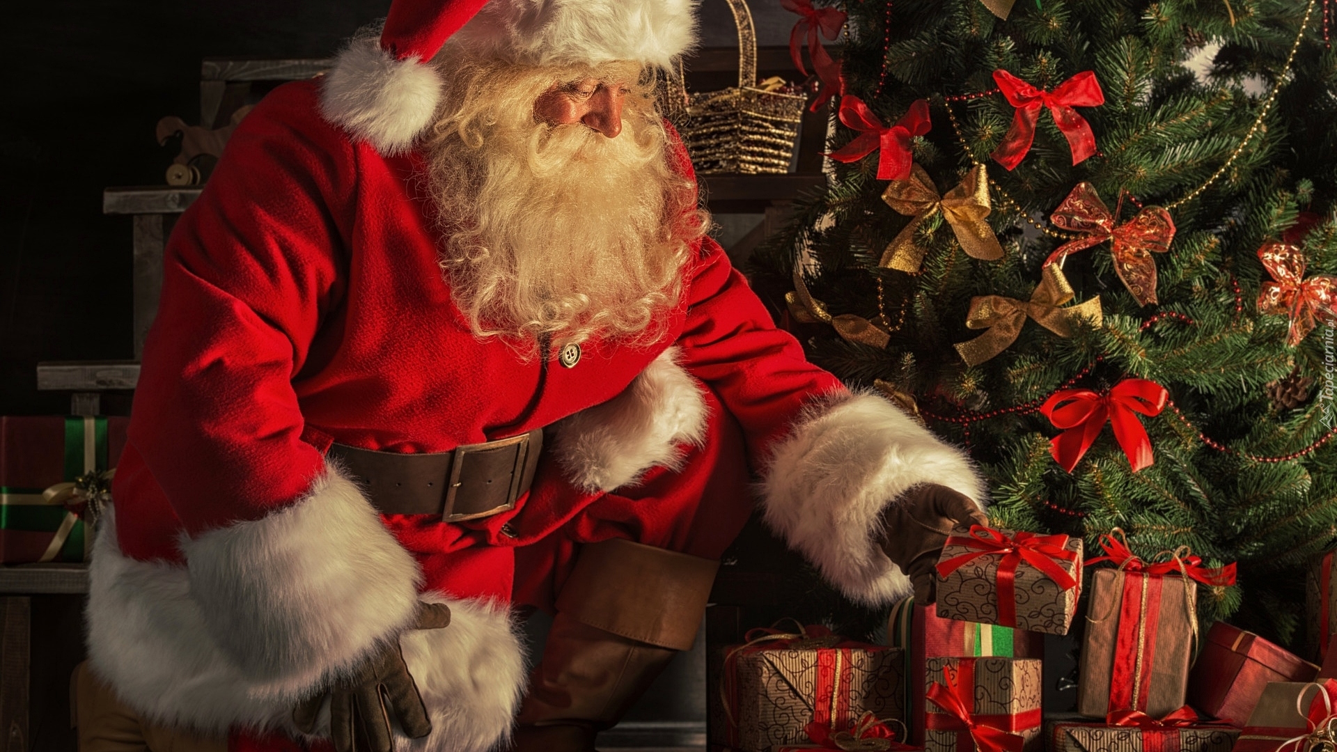 Edytor tapety: Mikołaj przy choince