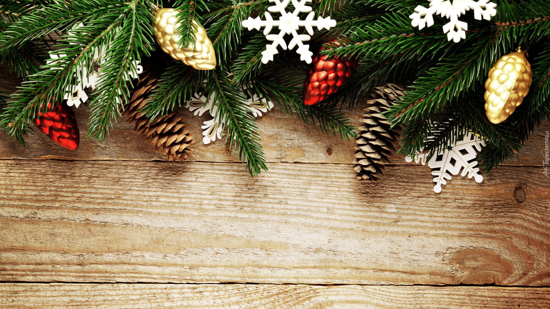 Edytor tapety: Gałązki i szyszki w dekoracji świątecznej na deskach