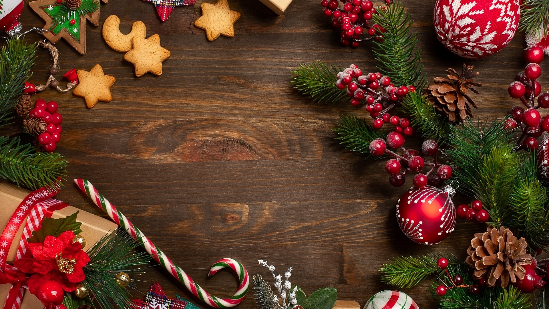 Edytor tapety: Kompozycja bożonarodzeniowa z prezentem i gałązkami