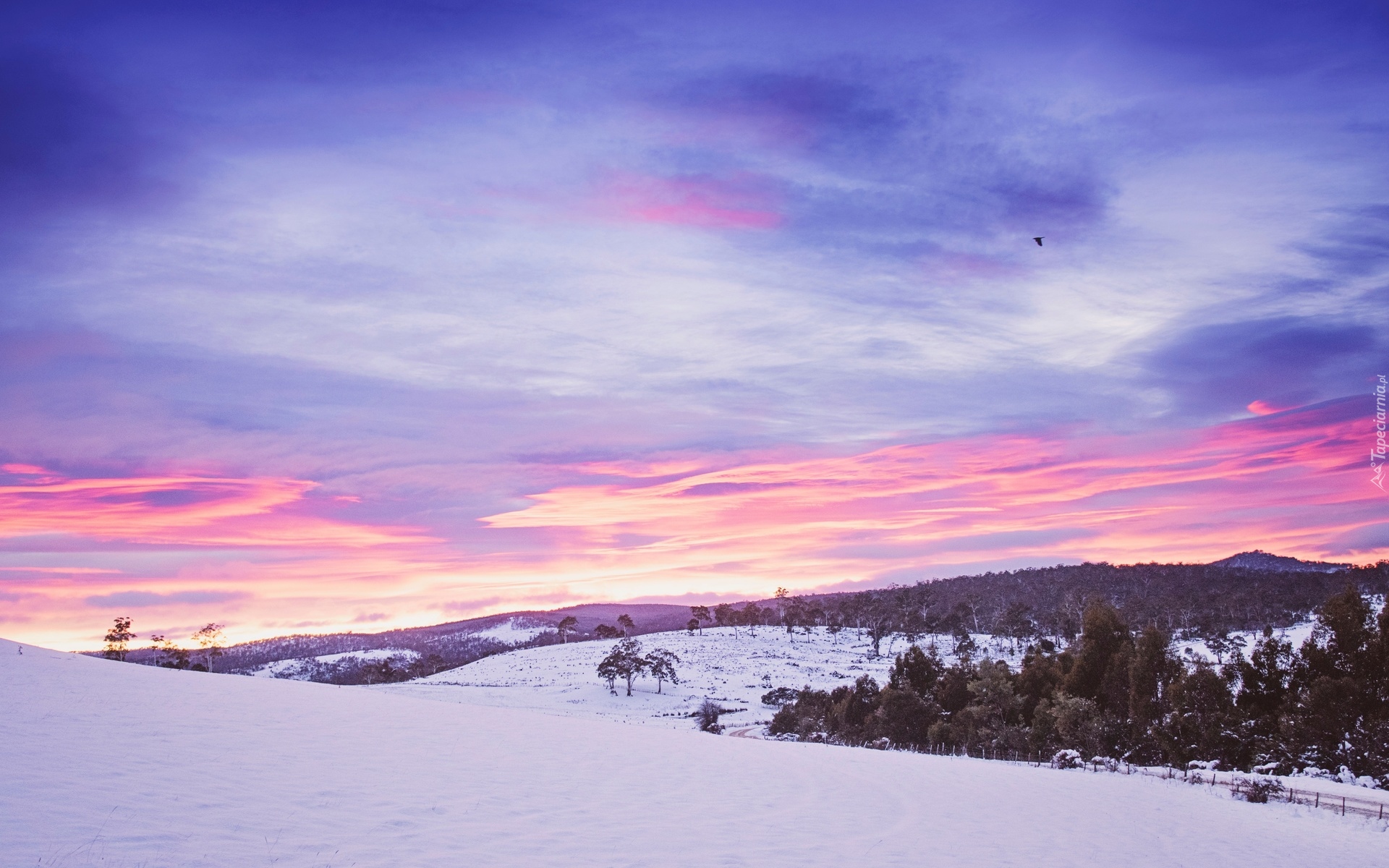 Edytor tapety: Zimowy krajobraz z zaróżowionym niebem