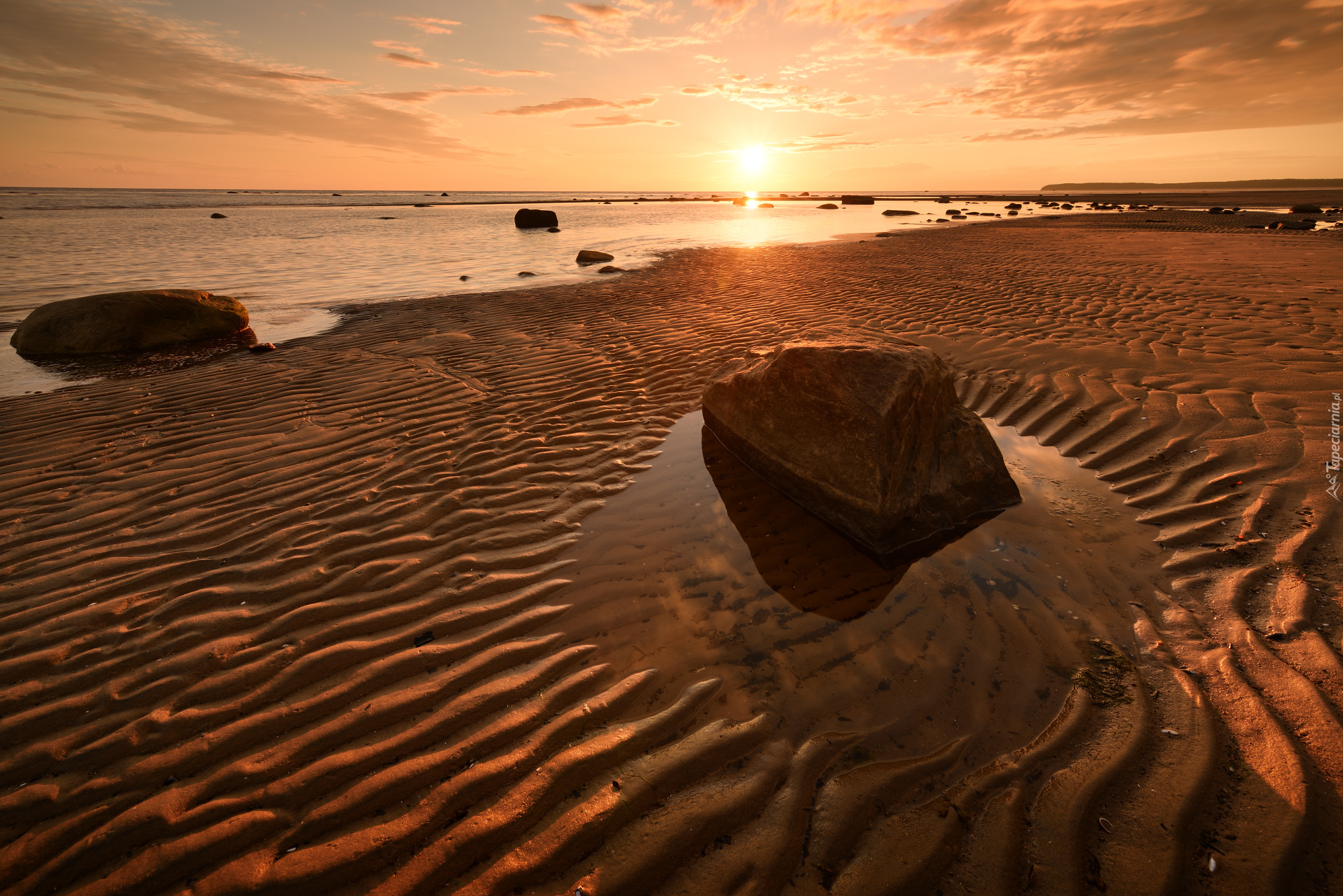 Edytor tapety: Kamienie na plaży i zachód słońca nad morzem