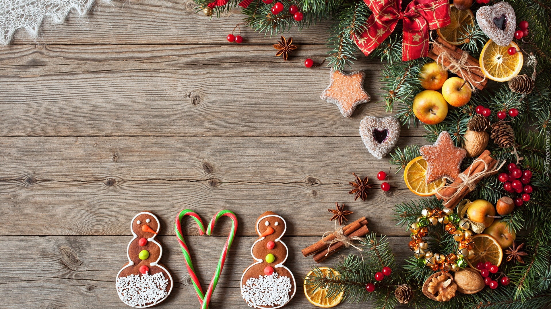 Edytor tapety: Dwa pierniczki bałwanki w kompozycji świątecznej