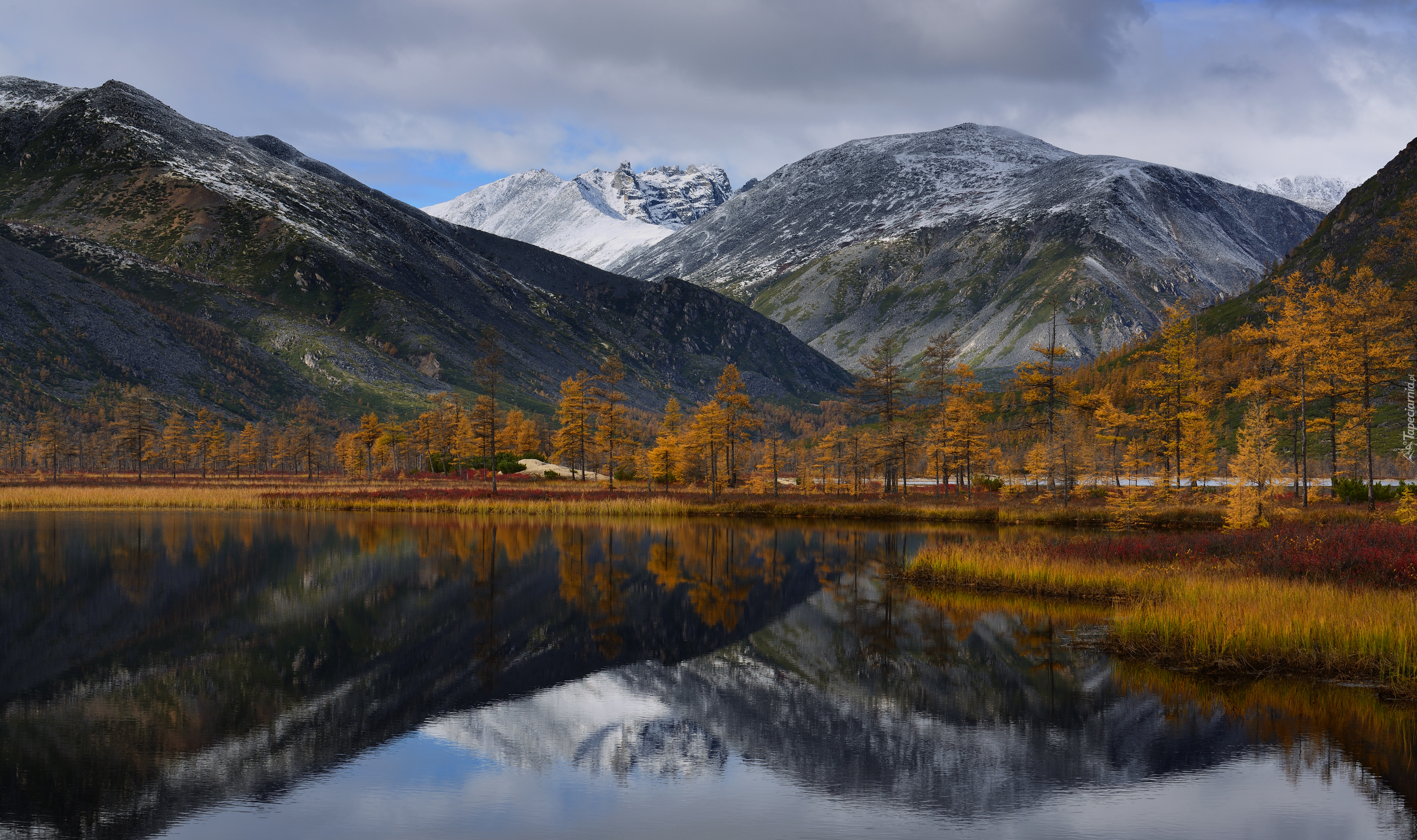 Edytor tapety: Jesienne drzewa nad jeziorem Jack London na Kołymie