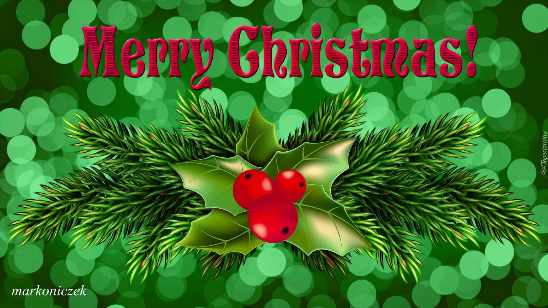 Edytor tapety: Czerwone jagody na gałązce z życzeniami