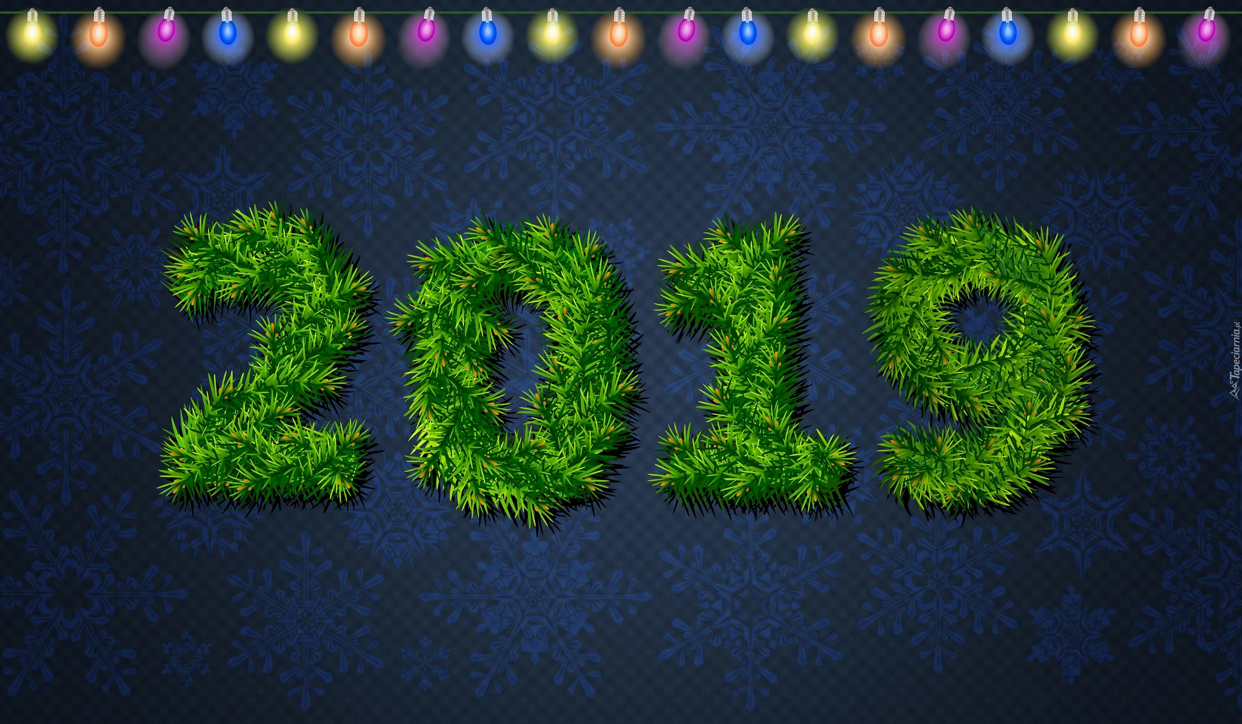 Edytor tapety: Nowy Rok 2019 utworzony z zielonych gałązek
