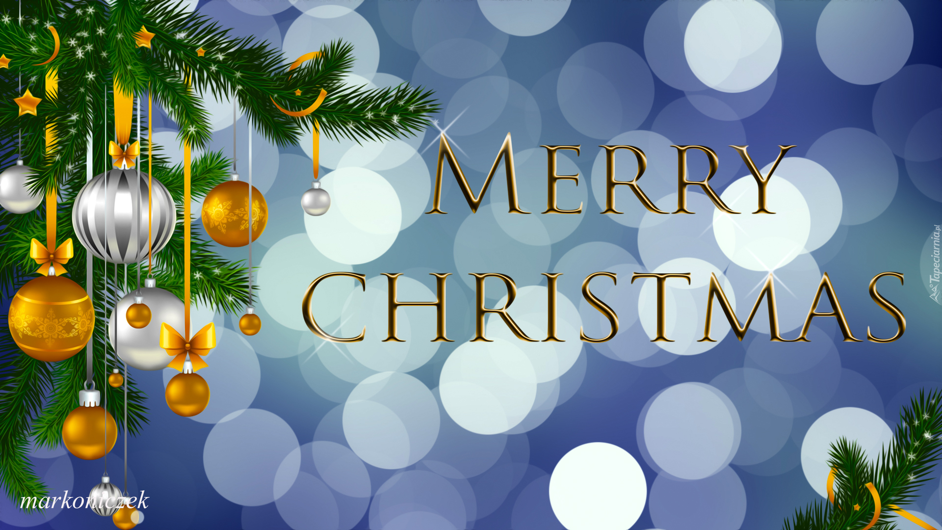 Edytor tapety: Życzenia świąteczne obok stroika z bombkami
