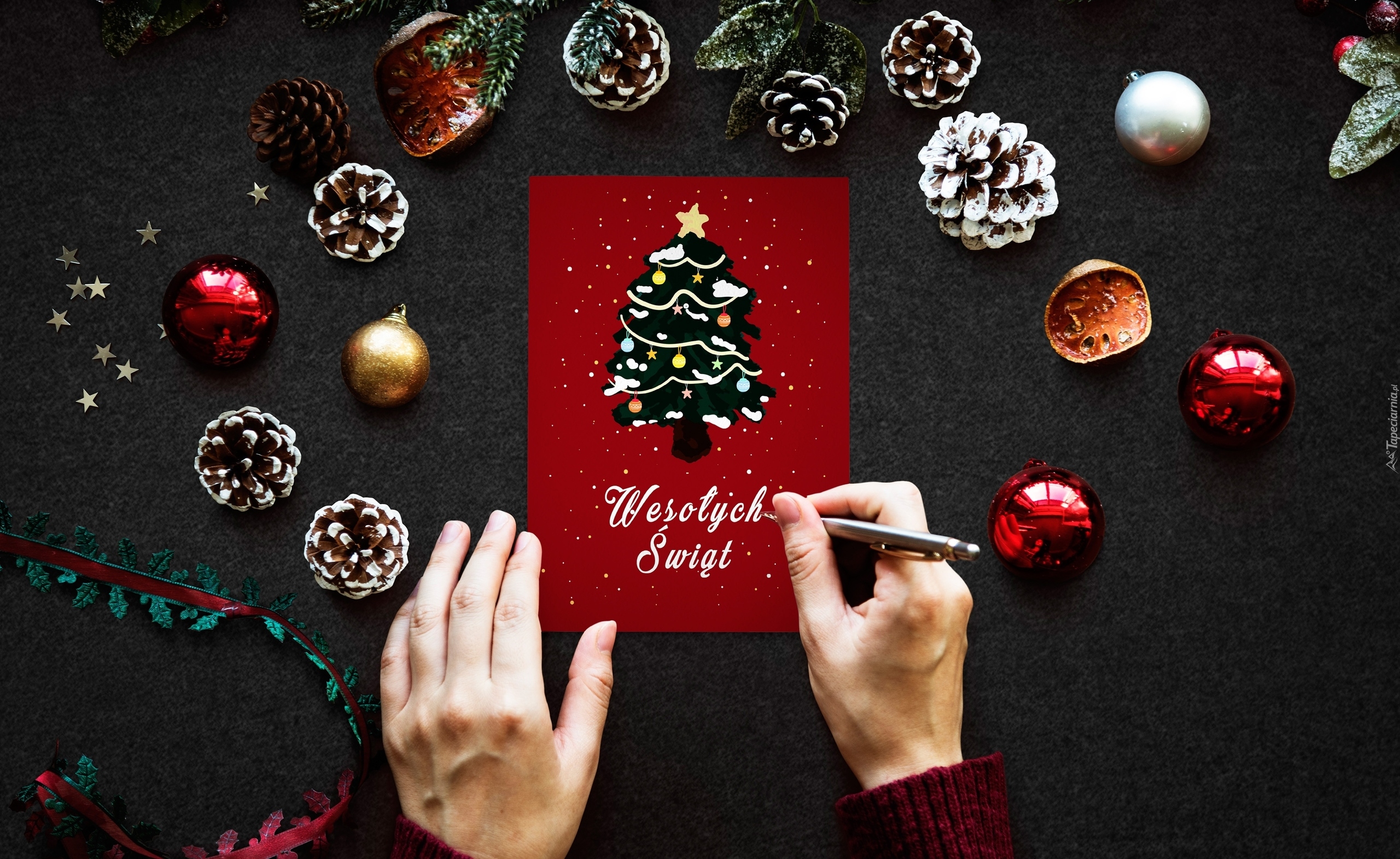 Edytor tapety: Dłonie na kartce z życzeniami świątecznymi