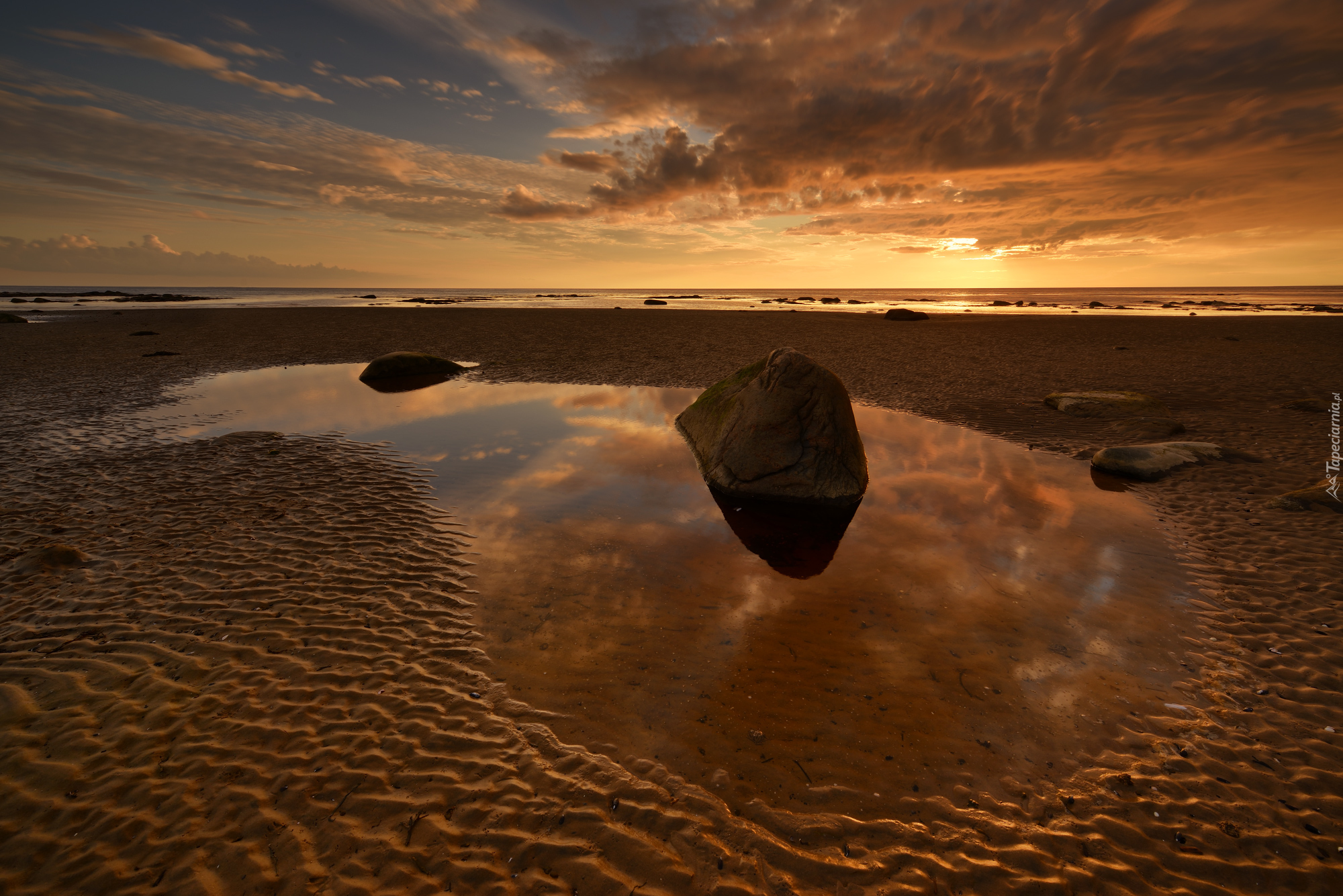 Edytor tapety: Kamienie w kałuży na plaży