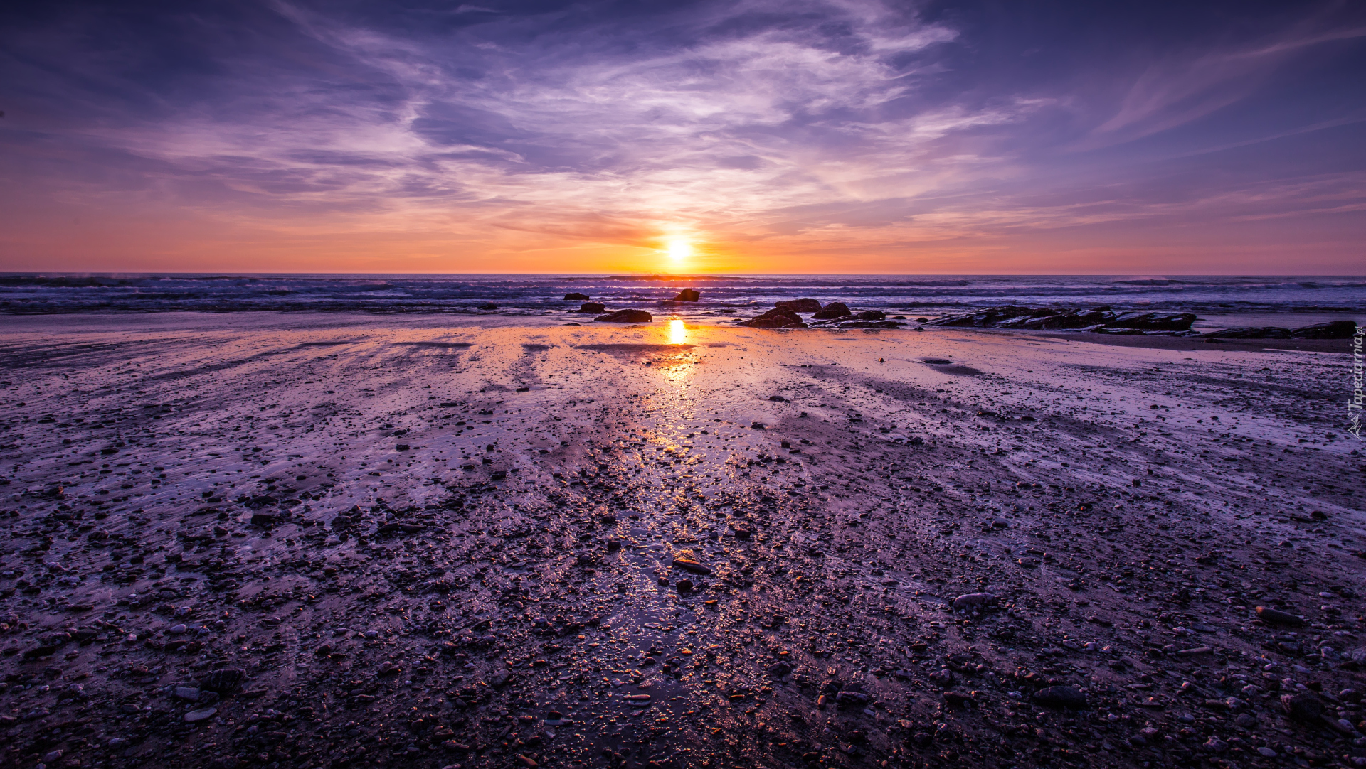 Edytor tapety: Plaża z widokiem na zachodzące słońce
