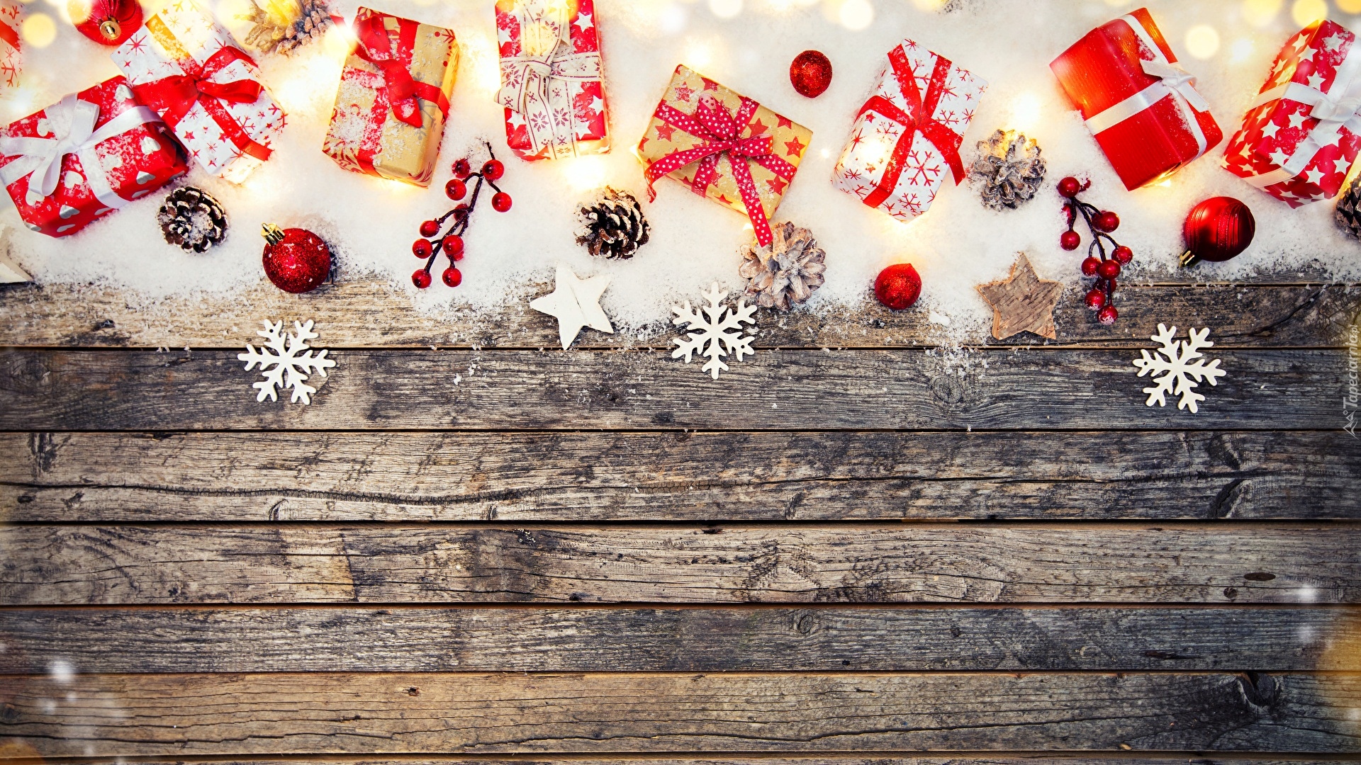 Edytor tapety: Kompozycja z prezentami i świątecznymi ozdobami