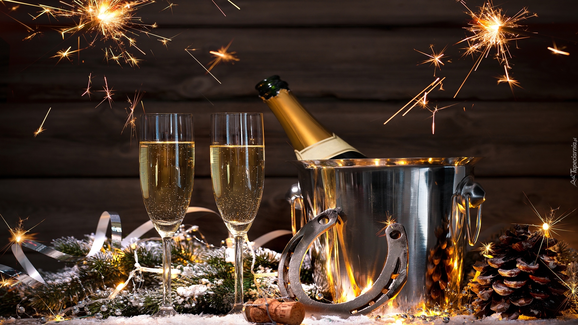 Edytor tapety: Podkowa na szczęście z szampanem w wiaderku