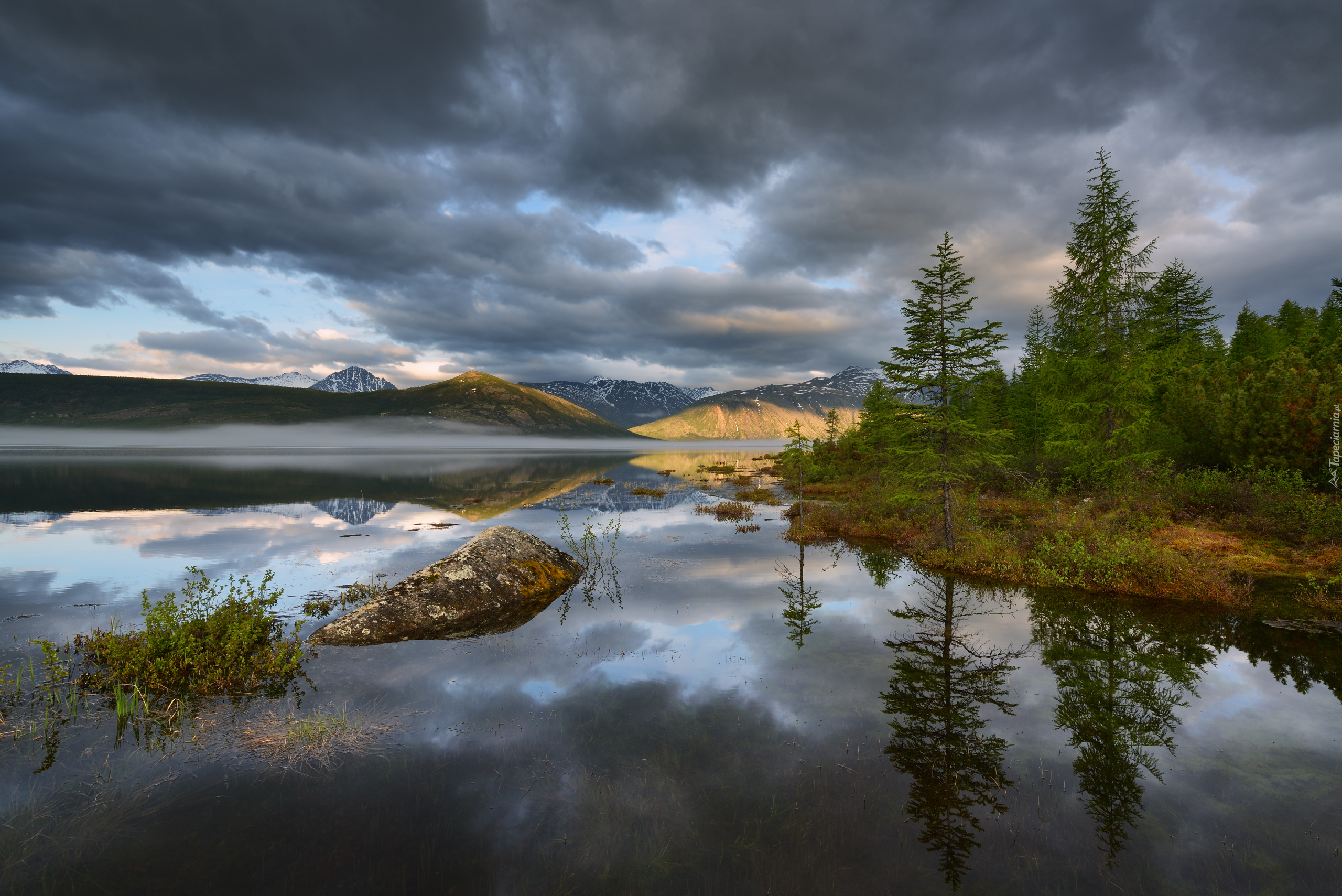 Edytor tapety: Drzewa nad jeziorem Jack London