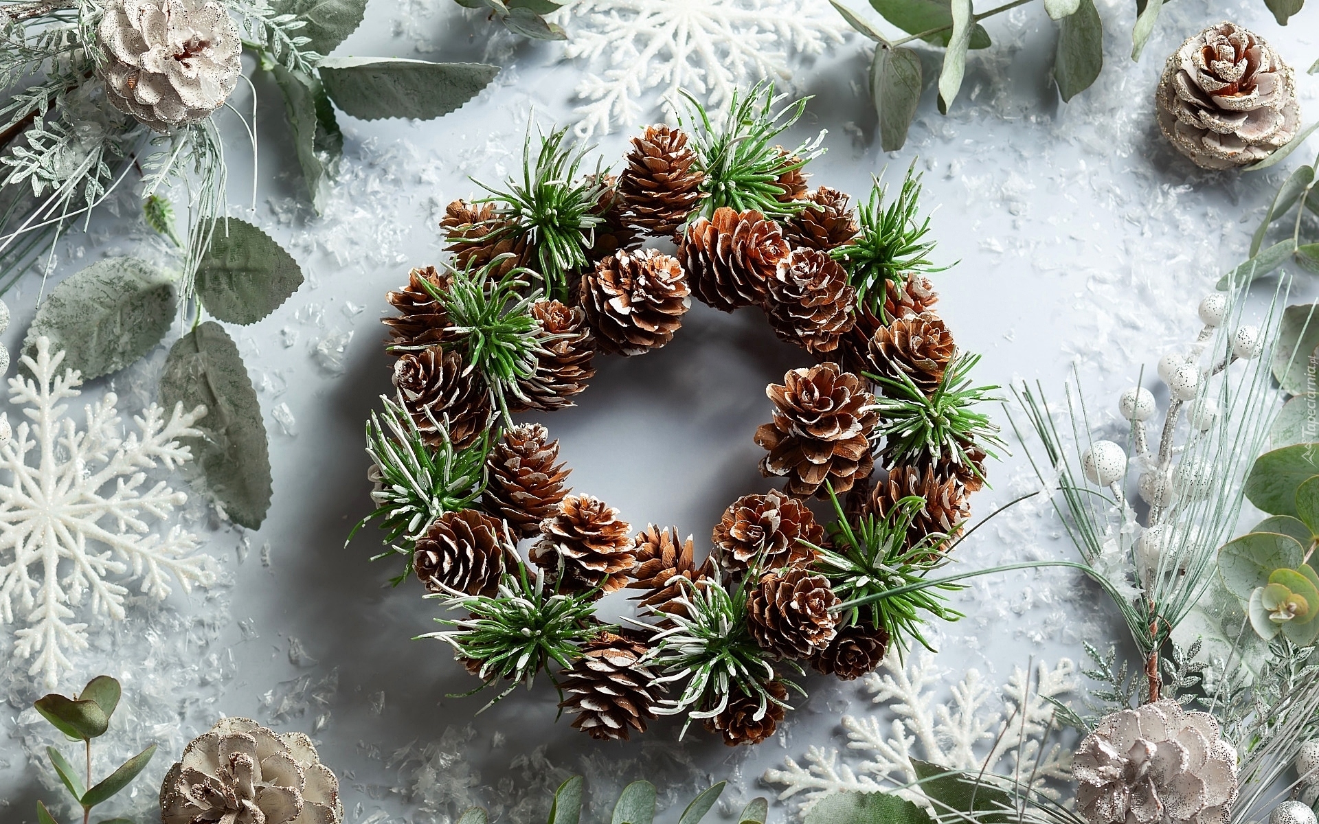 Edytor tapety: Świąteczny stroik z szyszkami