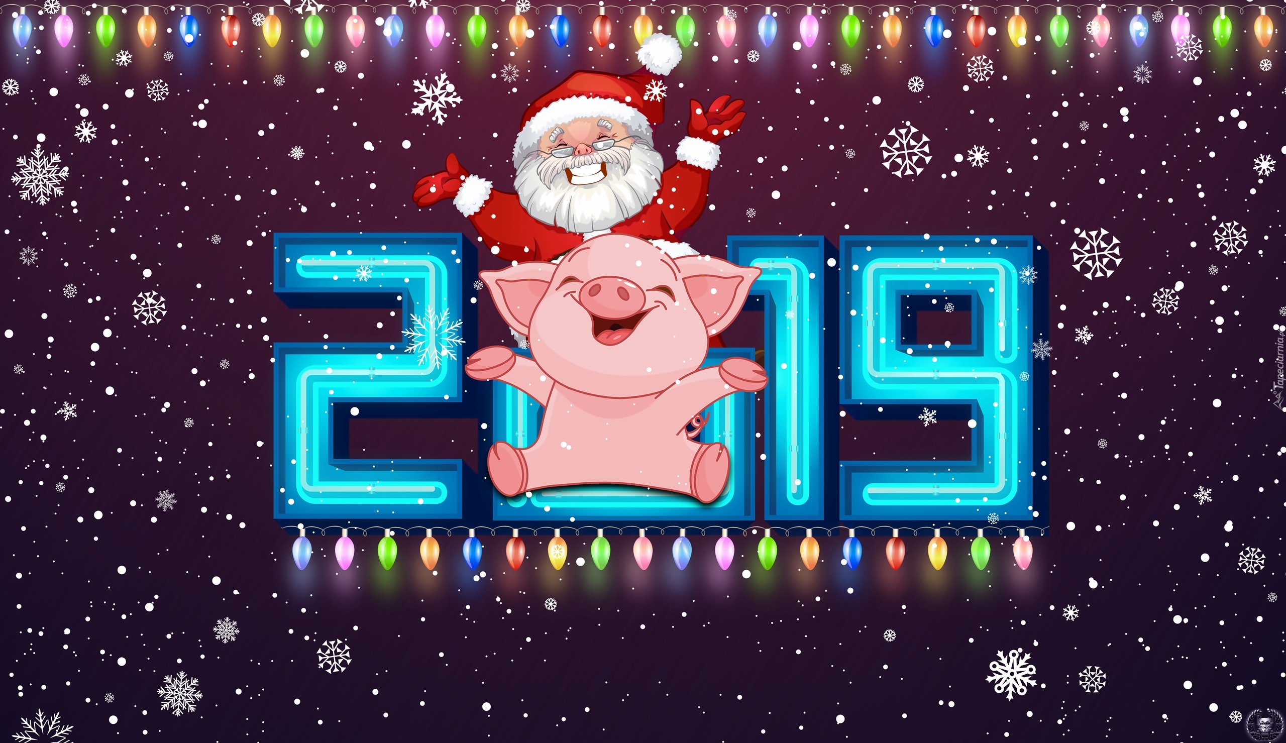 Edytor tapety: Mikołajek i świnka na tle neonu 2019