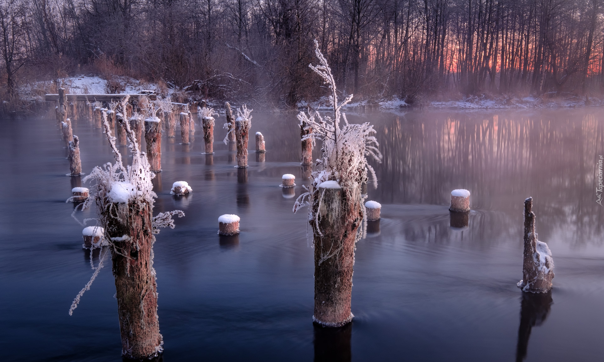 Edytor tapety: Ośnieżone kołki w jeziorze