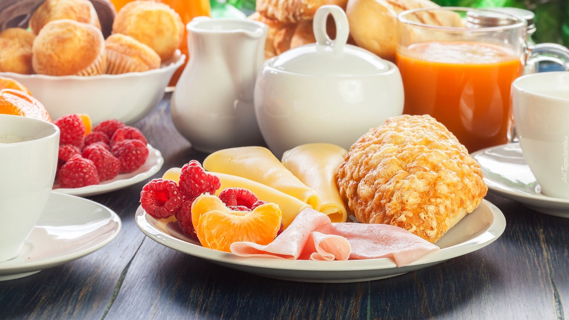 Edytor tapety: Bułka obok żółtego sera i wędliny