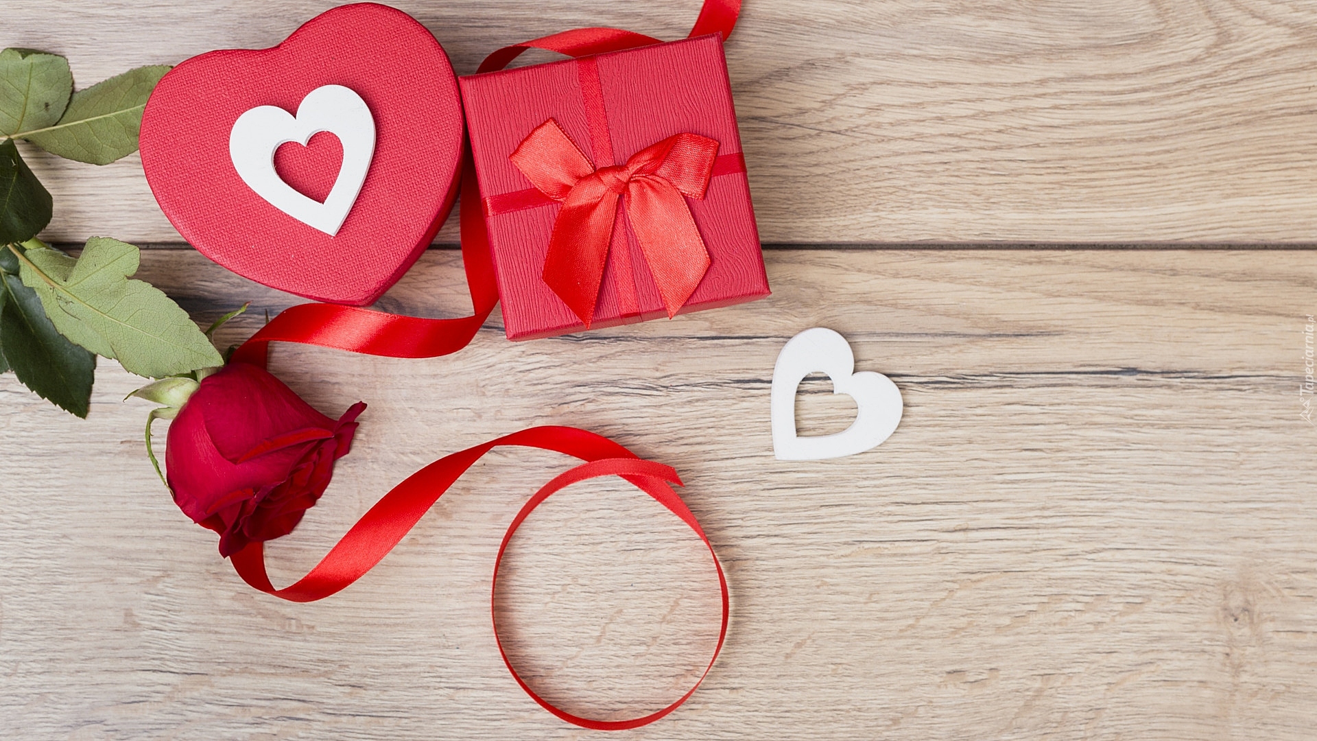 Edytor tapety: Prezent z serduszkiem i różą na Walentynki