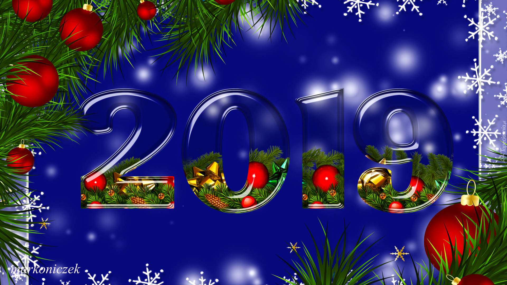 Edytor tapety: Nowy Rok 2019 z gałązkami i bombkami