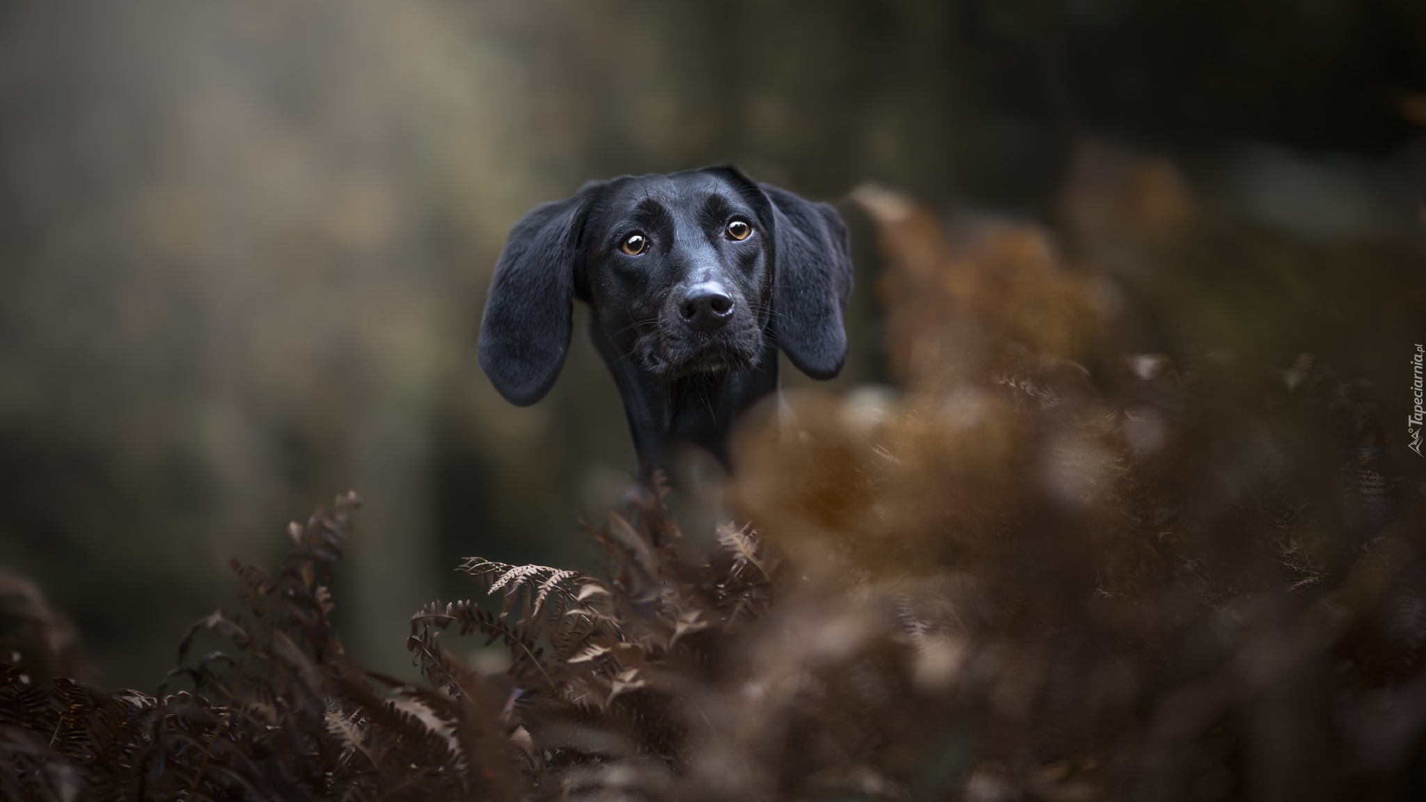 Edytor tapety: Głowa czarnego psa z długimi uszami