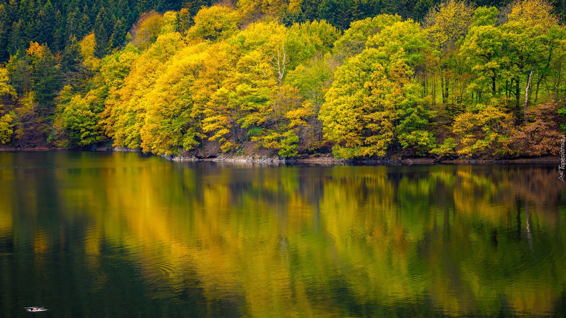 Edytor tapety: Jezioro z jesiennymi drzewami
