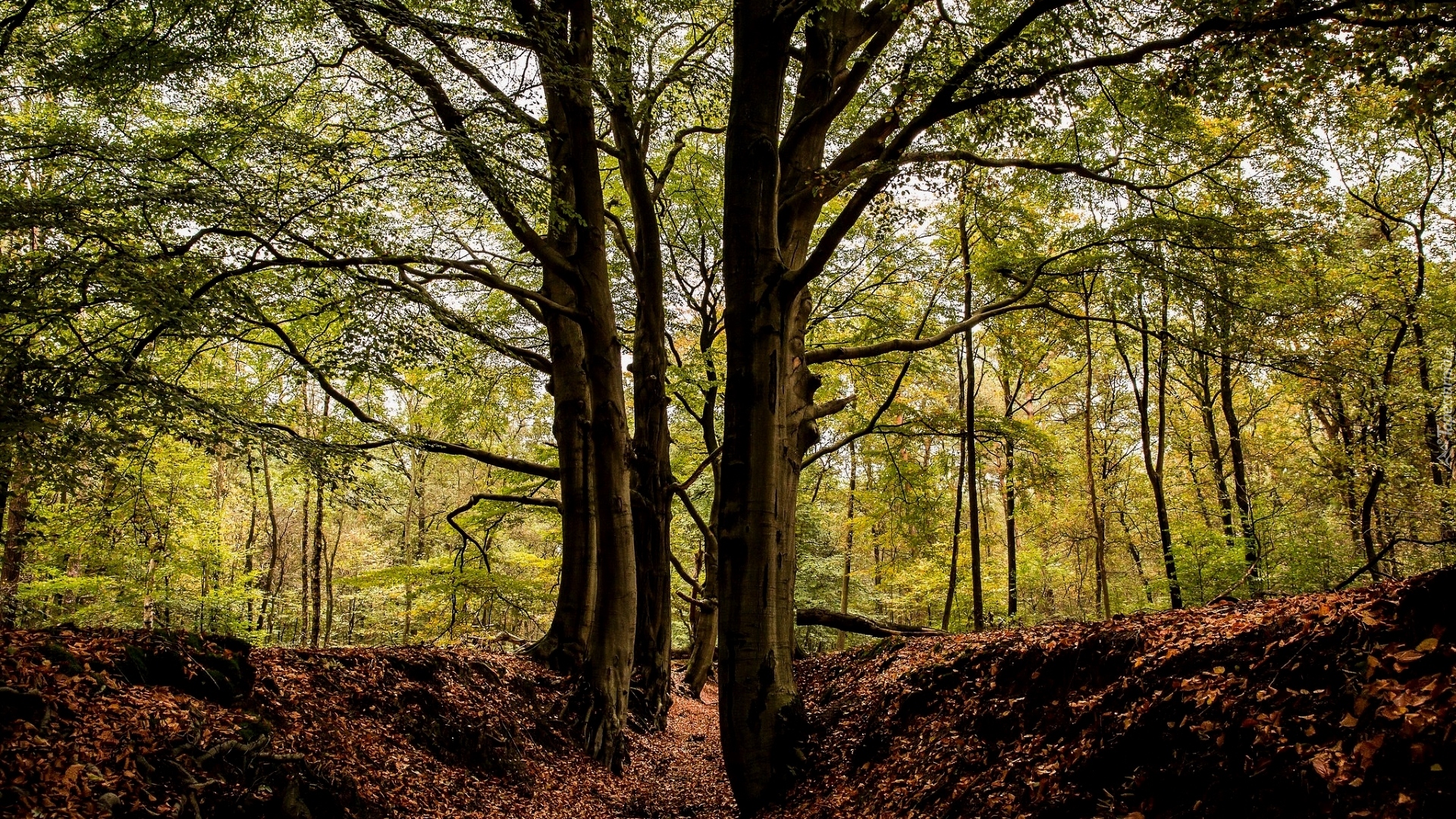 Edytor tapety: Odpadłe liście pod drzewami